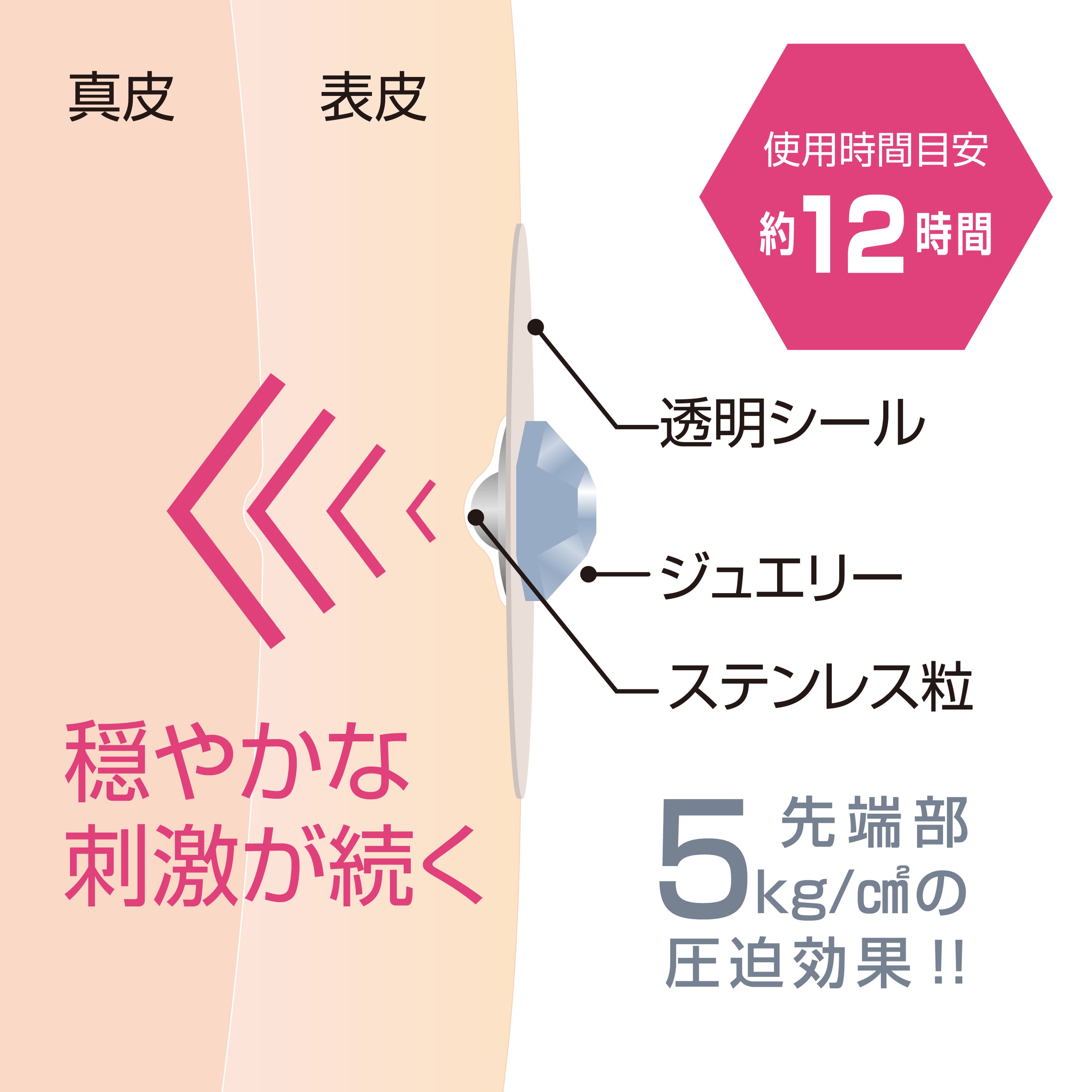 先端部5kg/㎠の圧迫効果があるステンレス粒で、穏やかな刺激が続きます。