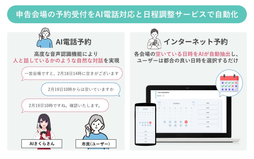 愛知県一宮市が「AIさくらさん」を導入!1日1,500件以上の申告予約受付をAIエージェントを活用した電話対応とインターネット予約で完全自動化