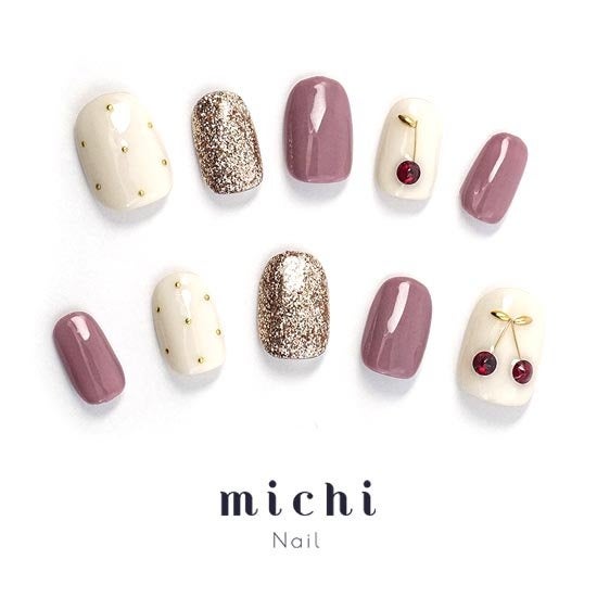 くすみピンクとさくらんぼがポイントのラブリーなこちらのネイル。さくらんぼの可愛さとグリッターのキラキラが程よいバランスでおしゃれ!夏のデートやイベントに指先からテンションを上げてくれるこちらのネイルがおすすめです!
