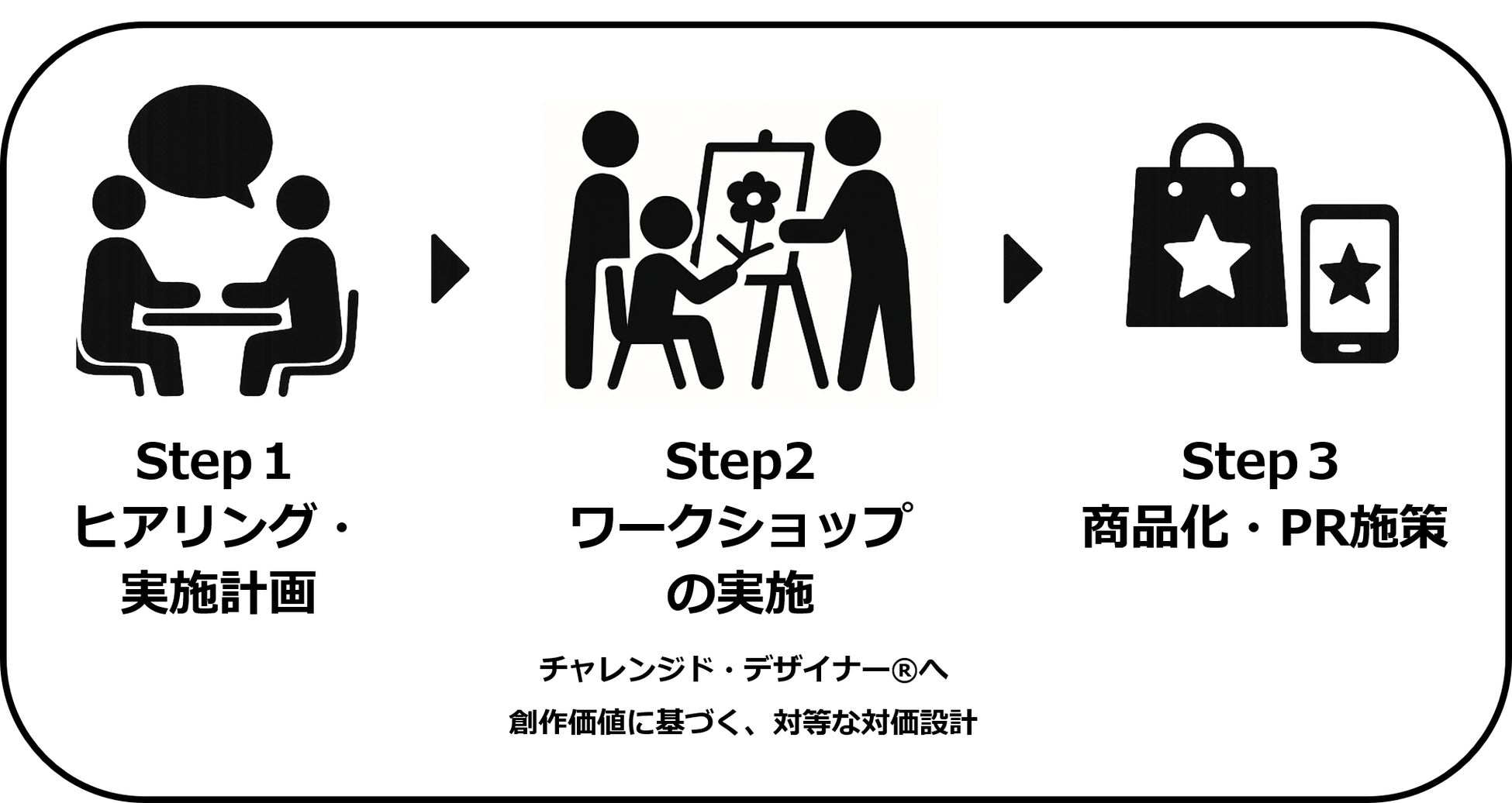 本プログラムは、共創によって生まれたアウトプットを企業の事業・ブランド活動の中で継続的に展開し、実際の事業成果につなげることを目的としています。チャレンジド・デザイナー®の才能を活かし、クライアントと共に新しい価値を創造するプログラムです。