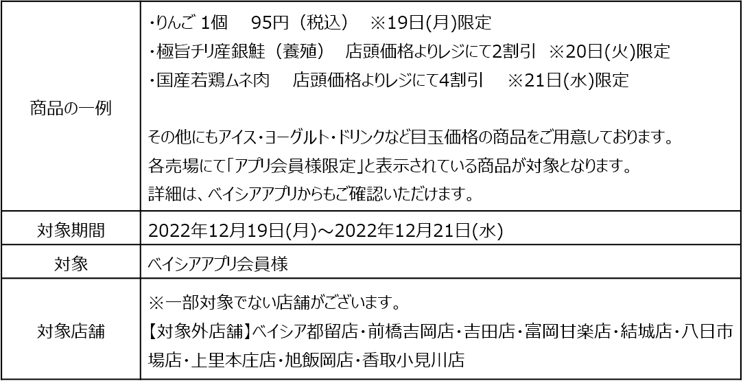 『ベイシアアプリ会員様限定 シークレットセール』概要