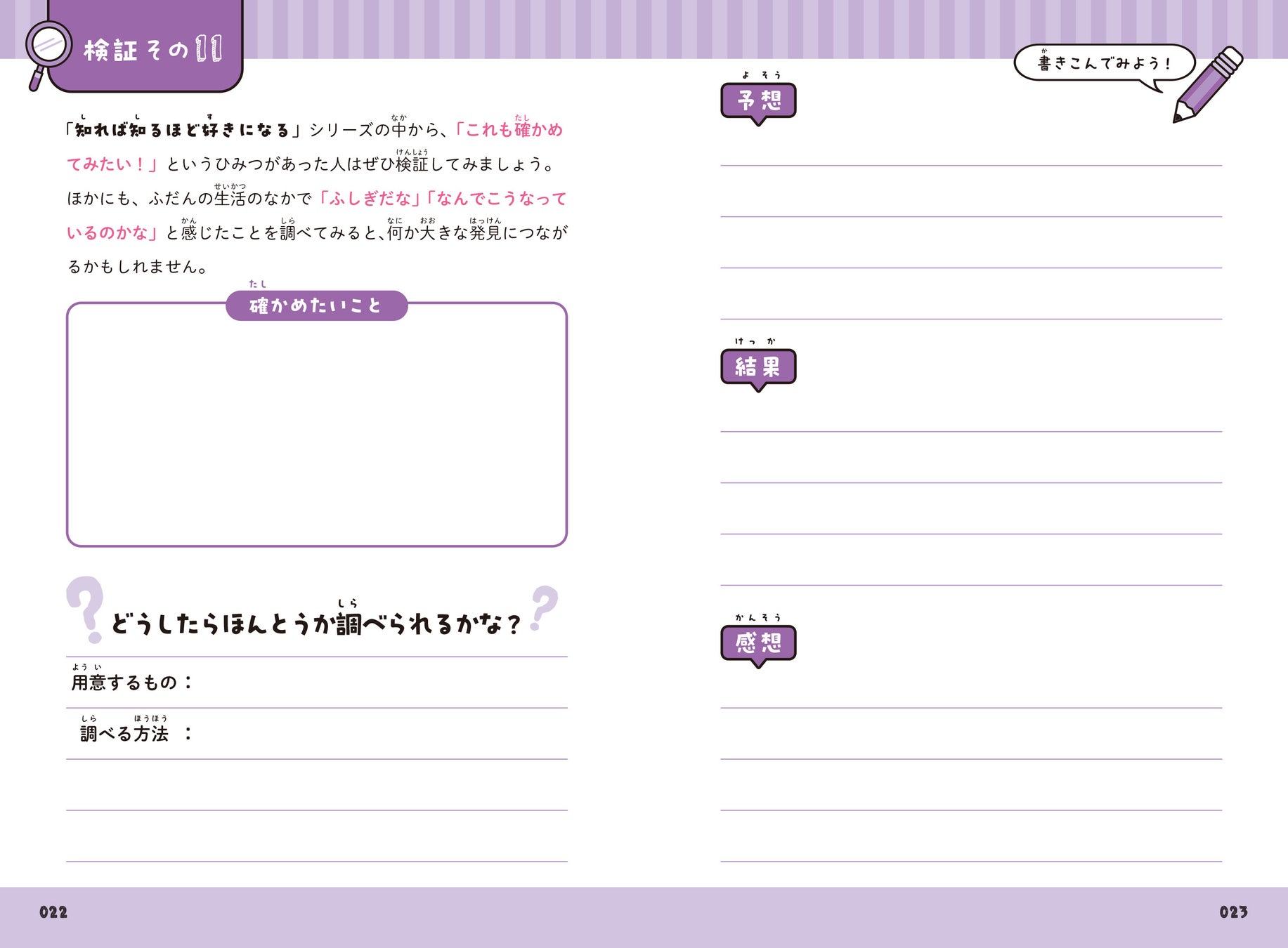 該当シリーズの書籍の掲載されているネタを検証できるページに加えて、フリーのページも設けました。身の周りの「ふしぎ」に対して、「どうしてこうなっているのかな」「どうしたら調べられるかな」と考えて検証できるようになっています。そのまま夏休みの自由研究として活用することもできます。
