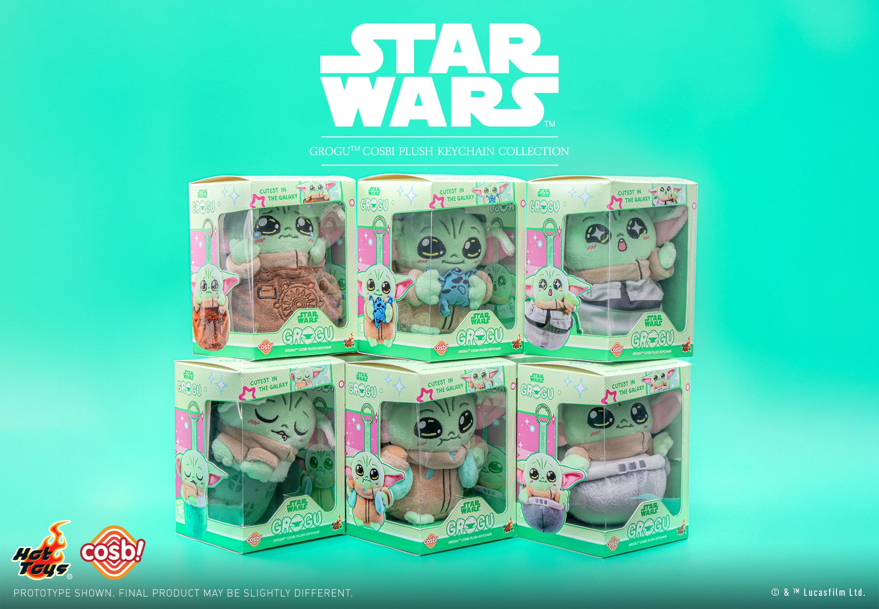 シンプルで愛らしいフォルムと集めやすいサイズが特徴的なデフォルメフィギュア「コスビ」シリーズのデザインをモチーフに、『スター・ウォーズ/グローグー:キューテスト・イン・ザ・ギャラクシー』デザインのグローグーをぬいぐるみ化!大きさは高さ約12~16cmで、キーチェーンとして使用できるストラップとリングがついているぞ。ラインナップは、巾着バッグ、ソーガン・フロッグ、マンダロリアンのヘルメット、スヤスヤ、ブルーマカロン、ホバープラムの全6種。パッケージは、そのまま飾っても可愛いウィンドウボックスだ。