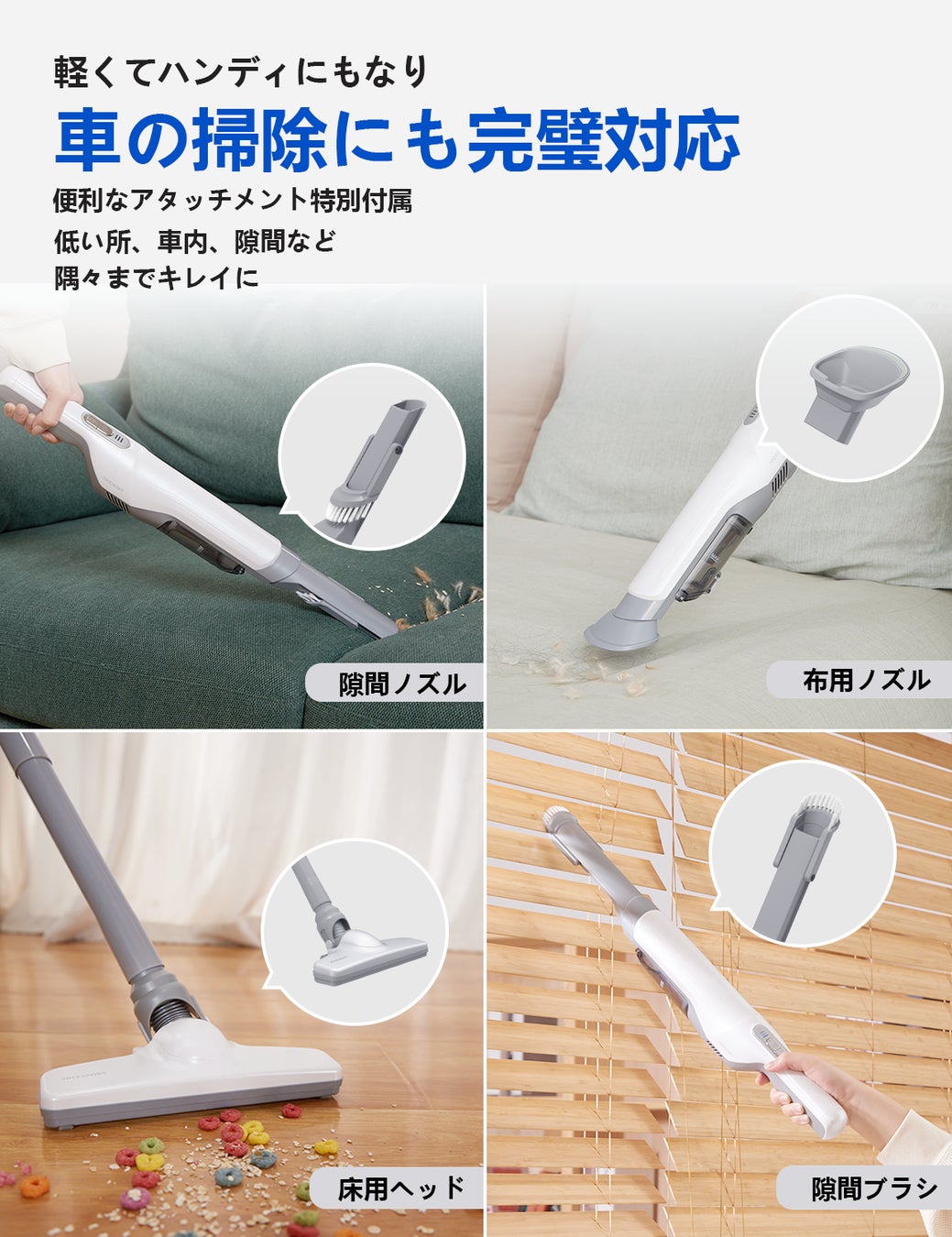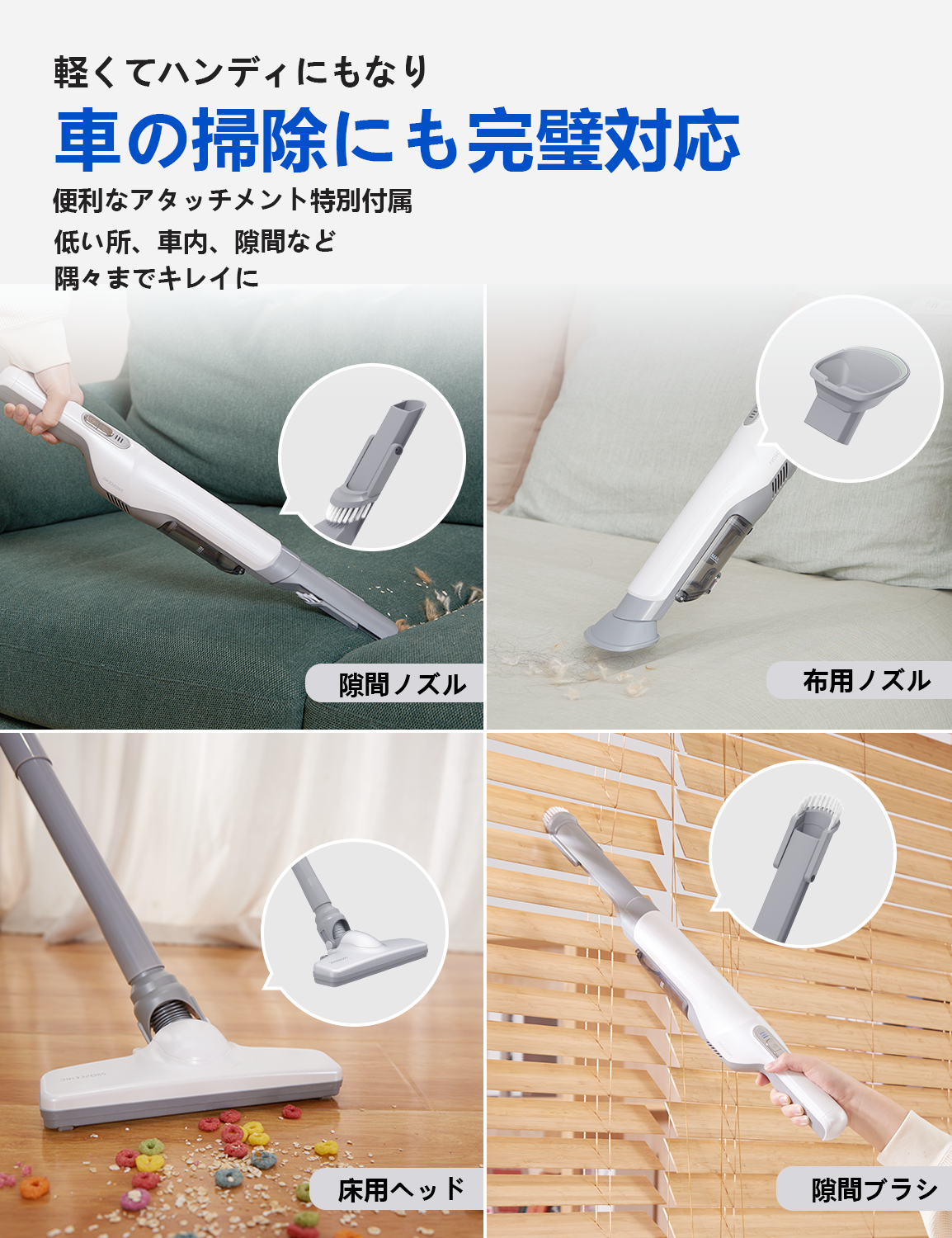 一台多役:床、車内、隅々まで徹底的に清掃!
