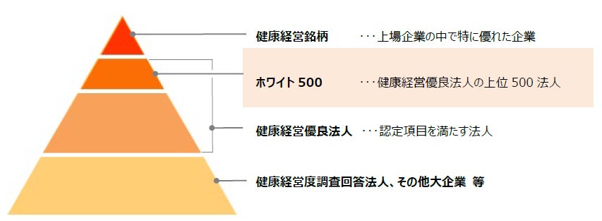 2019年まで健康経営優良法人(大規模法人部門)全体を通称「ホワイト500」としていたが、2020年度からは中小規模法人部門を新設し、大規模法人部門においては認定法人の中で、健康経営度調査結果の上位500法人のみを通称「ホワイト500」として認定。