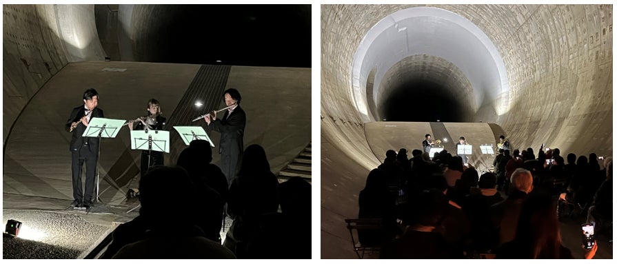 クラシック音楽や聞き馴染みのある音楽を、重厚感あふれる特別な巨大空間でお楽しみいただくとともに、「環七地下調節池」の見学(東京都公園協会が実施)を通して、防災に興味をもっていただける内容となっております。