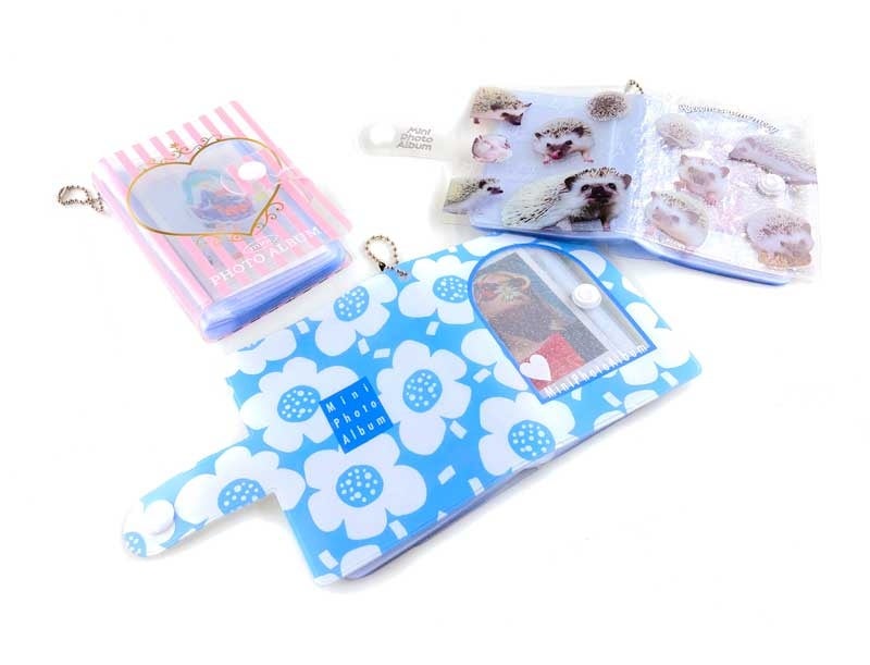 アルバムキーホルダーは、持ち運びに便利なキーホルダータイプ。ポケットにも収めやすく、中身が落ちる心配のないサイドスロータイプのポケットを採用。
