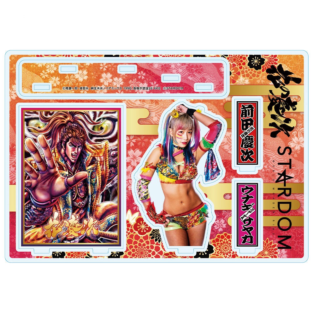 ウナギ・サヤカと後ろに堂々と佇む慶次の世紀のW傾奇者アクリルスタンド。