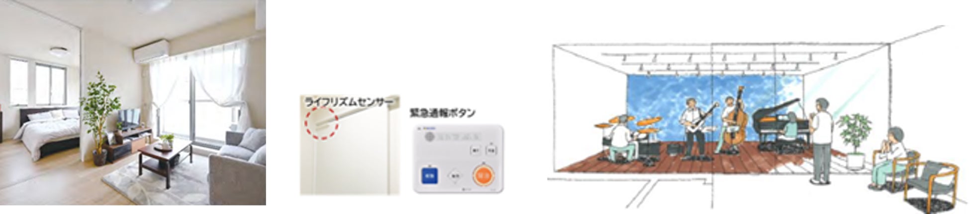 自立した暮らしを支援するヘーベルVillageの安心・安全で健康長寿に資する住環境・サービスに加え、趣味(楽器演奏)を起点に新たな入居者層の住み替えを喚起し、各居室と共用部に備えた防音室を軸に入居者同士ならびに地域住民との音楽を通したつながりを創出する取り組みとしました。