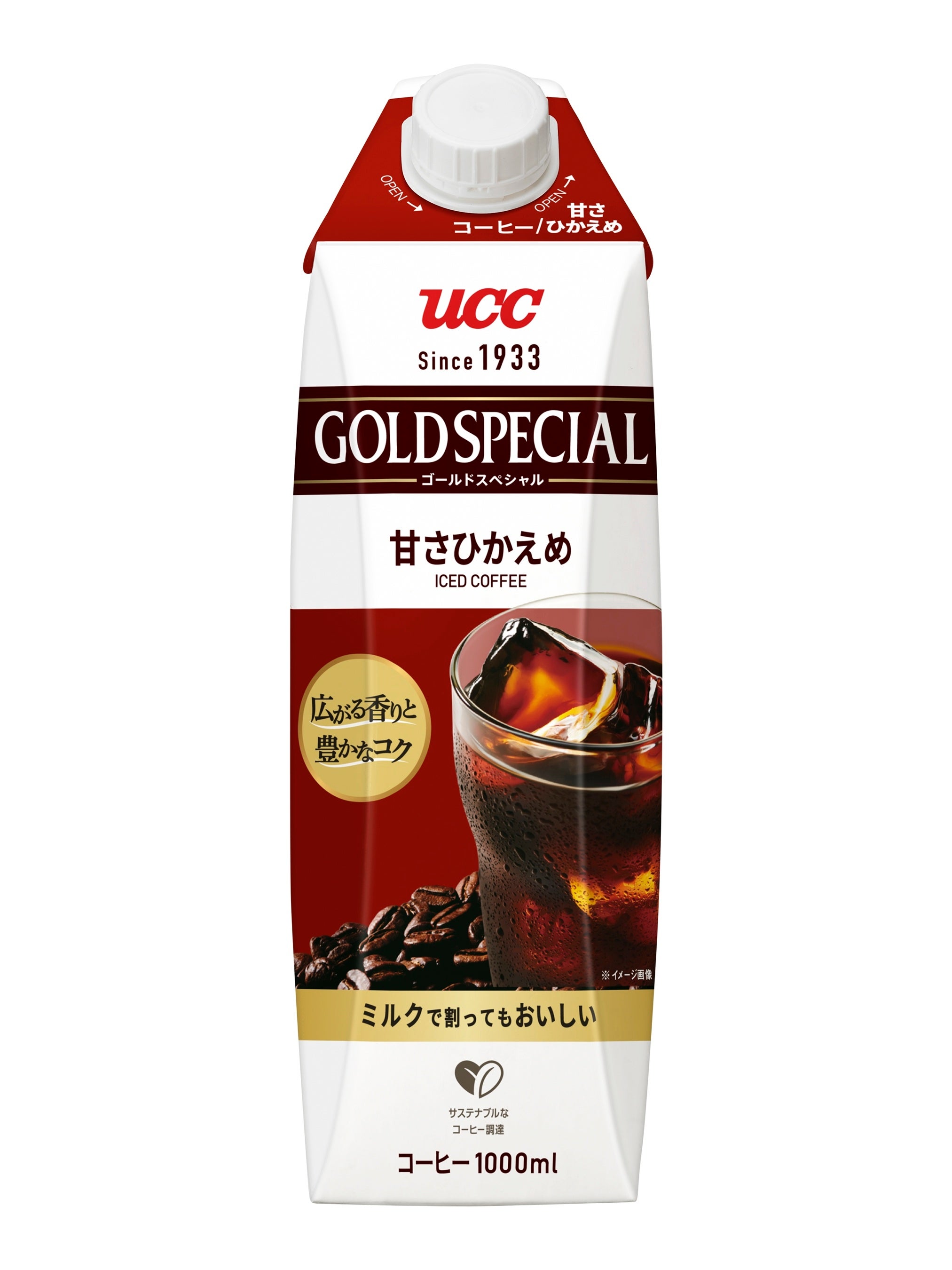 製品特長 | 24年連続売上No.1ブランド『UCC ゴールドスペシャル』の紙パックコーヒー ■焙煎:豆の個性を最大限に引き出す“単品焙煎” ・コク深い味わいは維持しつつ、クリーンな味わいへブラッシュアップ ・「甘さひかえめ」は、消費者ニーズに合わせてより甘みを抑えた味わいに調整 ■パッケージ: よりブランドを想起しやすいパッケージに |