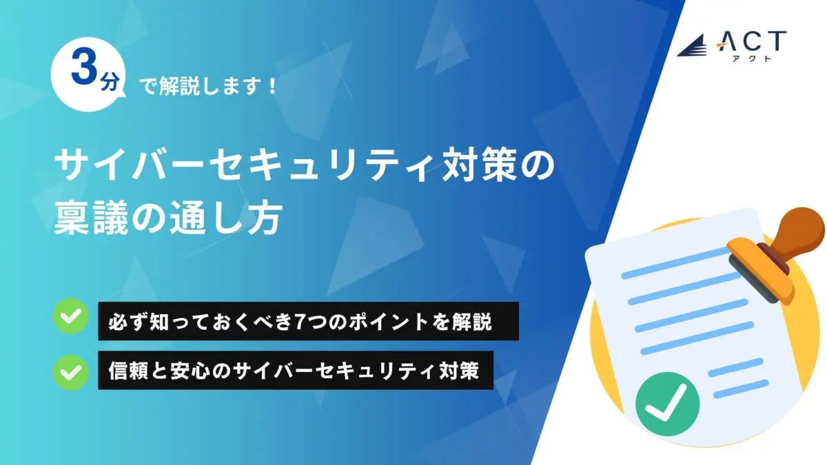 今年30周年を迎え、サイバーセキュリティ事業などを行う株式会社アクト(本社:東京都文京区、代表取締役CEO 小林 智彦 、以下 アクト)は【3分で解説!サイバーセキュリティ対策の稟議の通し方】のホワイトペーパーを公開しました。