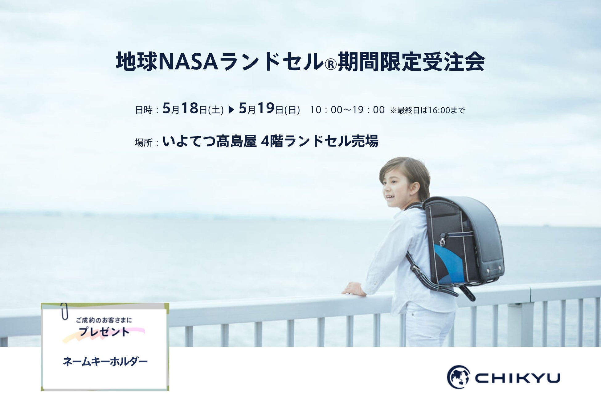ランドセルの企画・販売を行うCHIKYU株式会社(旧池田地球株式会社、東京都港区、代表取締役:村尾光一)は、愛媛・いよてつ髙島屋にて「地球NASAランドセル®期間限定受注会」を開催いたします。