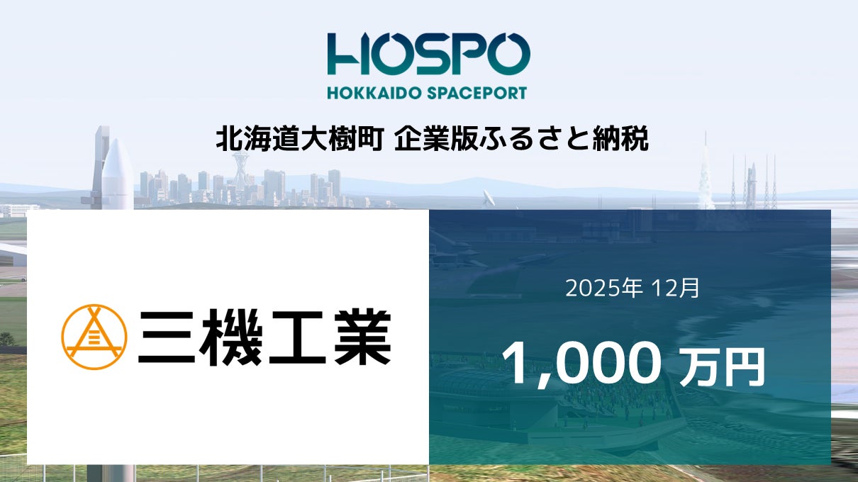 北海道大樹町(町長:黒川豊)は2025年12月、三機工業株式会社(本社:東京都中央区、代表取締役社長:石田 博一)より1,000万円の企業版ふるさと納税をいただきました。