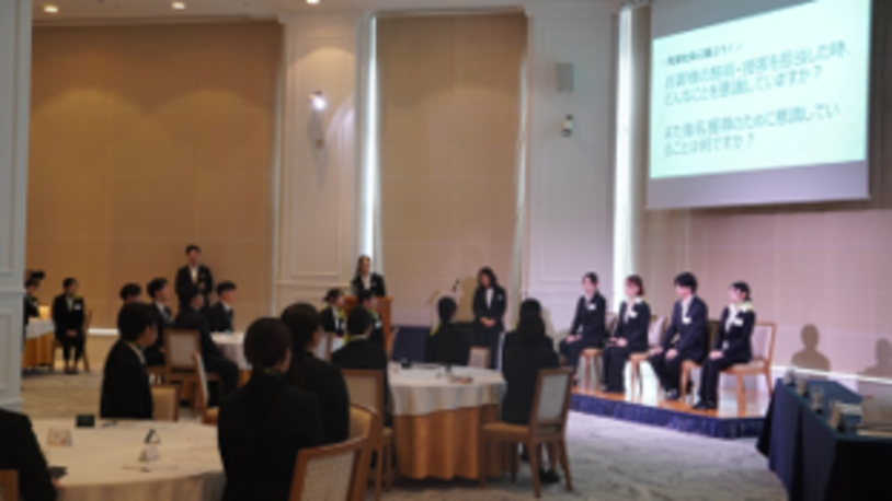 第一線で活躍する若手社員4名が、内定者からの質問に答える形式のパネルディスカッションを行いました。登壇者は「入社後のギャップや大変だったこと」を率直に共有したほか、お客様からの感謝を通じて感じる「仕事のやりがい」について熱く語りました。また「休み希望の取り方」など具体的な質問にも回答し、働くリアルな魅力と安心感を伝えました。