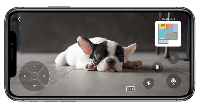 本体に搭載しているカメラで撮影する映像は、スマートフォンのアプリで見ることができ、留守中のご自宅の見守りとして、部屋の様子をリアルタイムで確認することが可能です。また、アプリを使い、遠隔で本体を操作できるので、外出先からペットなどの様子を確認できます。「S7 MaxV Ultra」では新たに、本体にマイクを搭載しており、双方向の通話も可能です。