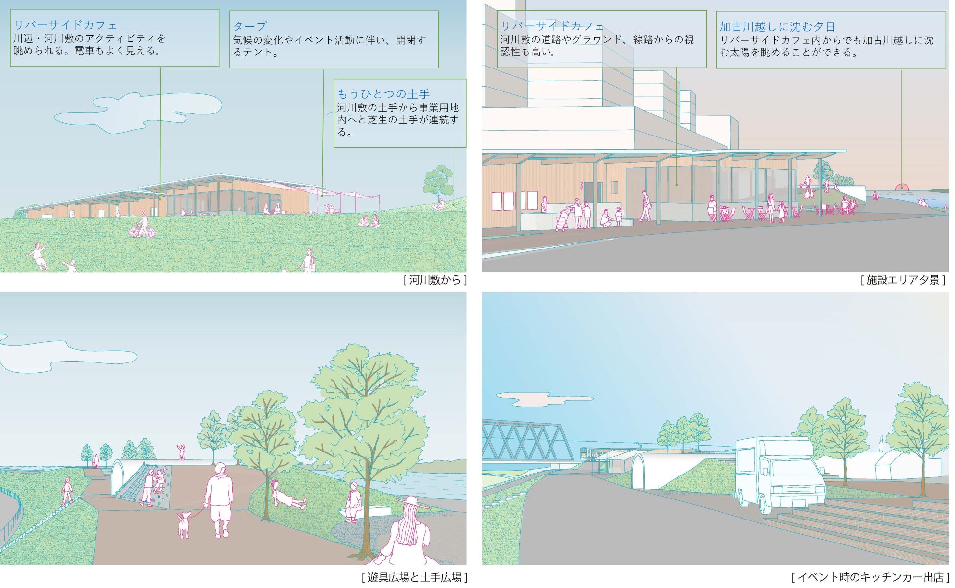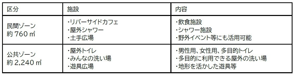 また、本事業では、国土交通省が取り組む、河川空間の利用に関する規制緩和制度(通称 RIVASITE-リバサイト-)の活用を検討しており、全国初の取組となる予定です。(※1)