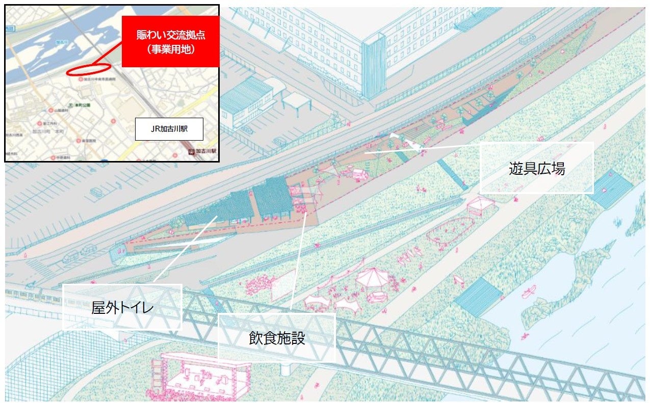 兵庫県加古川市(市長:岡田康裕)は、これまで、加古川市かわまちづくり計画において「賑わい交流拠点」と位置付ける事業用地(約3,000㎡)に民間事業者による常設の飲食施設等を誘致することを目指し、当該事業用地を整備・運営する事業者を公募してきました。