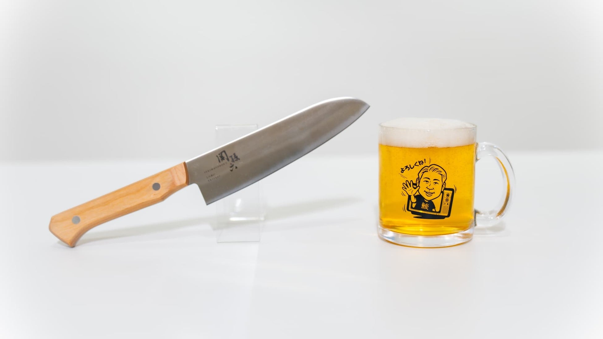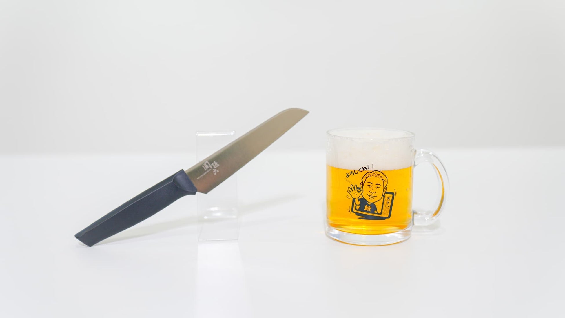 動画でもよく使用しているロゴ入りミニジョッキや包丁、コンパクトナイフとのセットです。