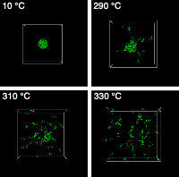 そもそも熱に弱いエステル油と水の混合物が、高温・高圧下でどのように振る舞うのかは全くわかっていませんでした。そこで研究チームは分子レベルのコンピュータシミュレーションを用い、エステル油が高温・高圧の水に分子溶解すること(図4)、さらには溶解挙動が油剤の化学構造に依存することを初めて明らかにしました。