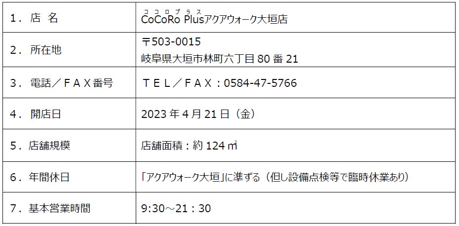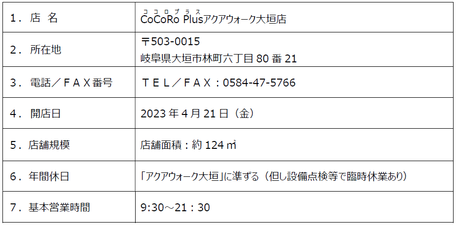 【「CoCoRo Plus アクアウォーク大垣店」概要】