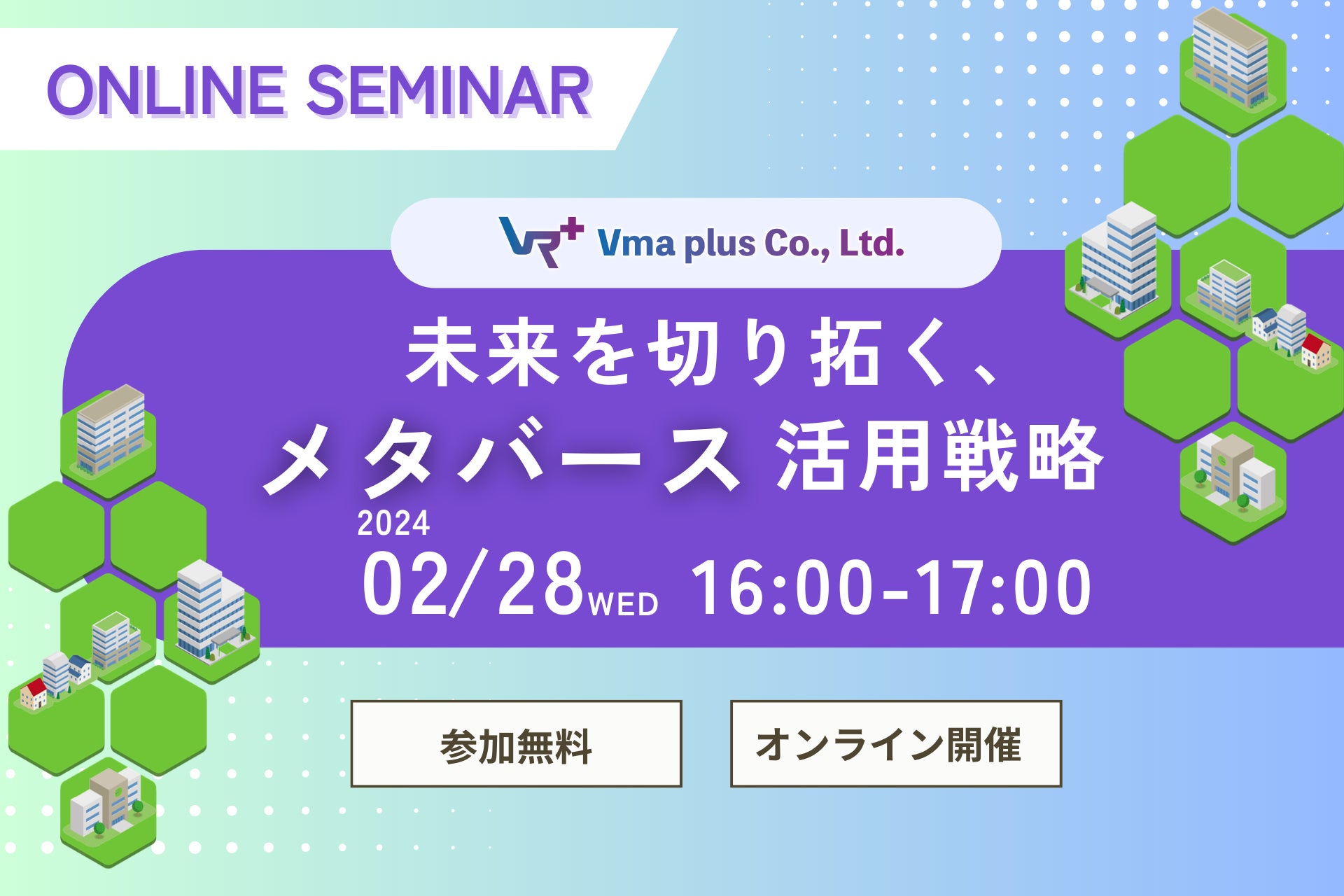 メタバースとWeb3.0に関するイベント企画やコンテンツ作成、そのディレクションを手がけるVma plus(ブイマプラス)株式会社(本社:東京都品川区、代表:津田徹)は、この度『未来を切り拓く、メタバース活用戦略セミナー』を、オンラインで2024年2月28日(水)に開催いたします。