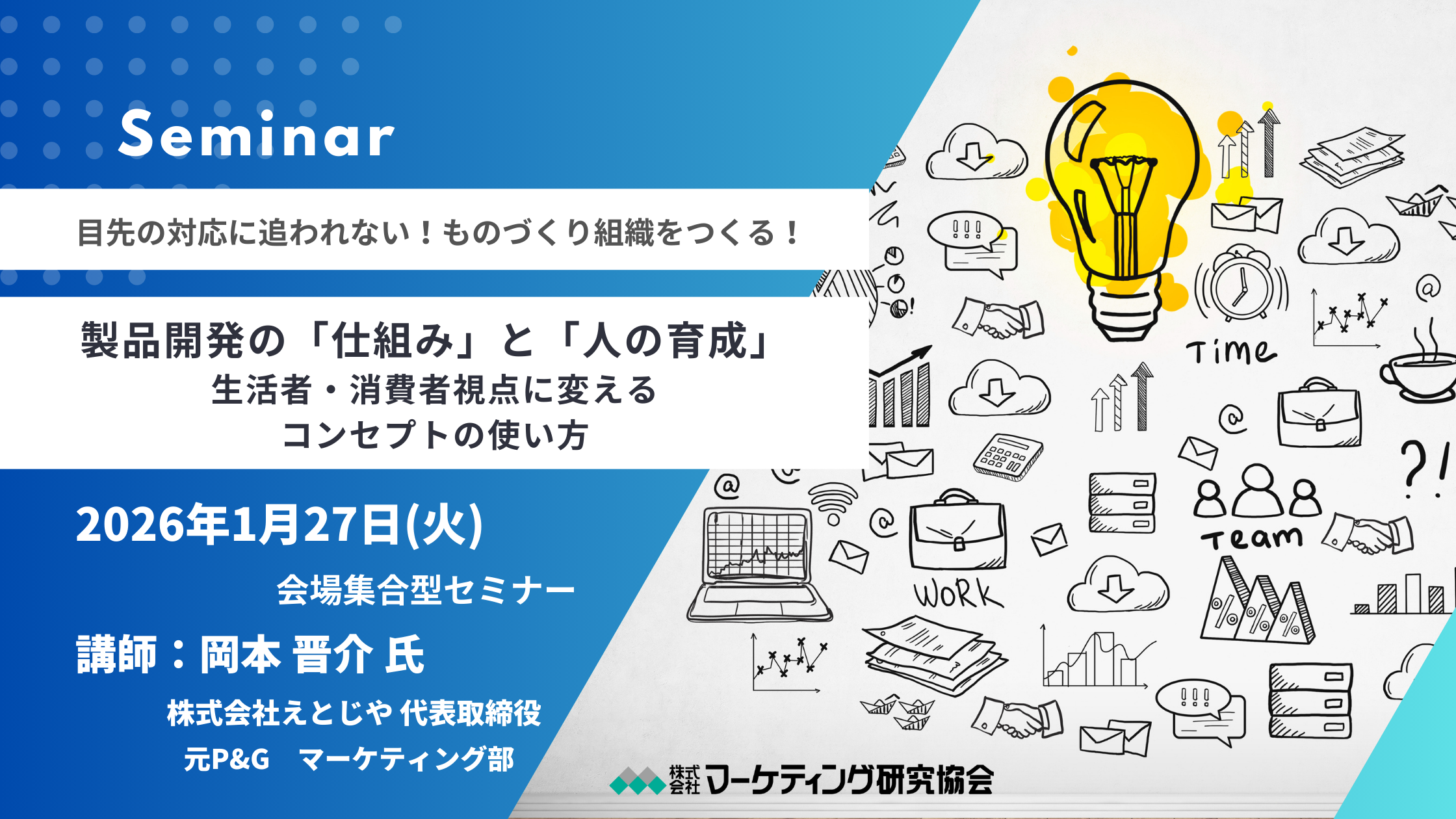 株式会社マーケティング研究協会は2026年1月27日セミナー「目先の対応に追われない製品開発の「仕組み」と「人の育成」~モノづくりを生活者・消費者視点に変える“コンセプト”の使い方~」を開催します。