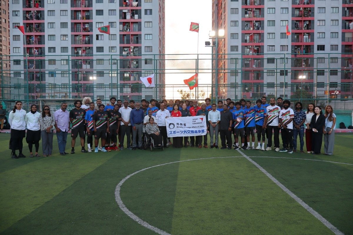 その引渡式が4月7日にモルディブで行われ、日本協会は元女子日本代表・おりひめジャパンのセンタープレーヤーとして活躍した大山真奈さんを派遣しました。