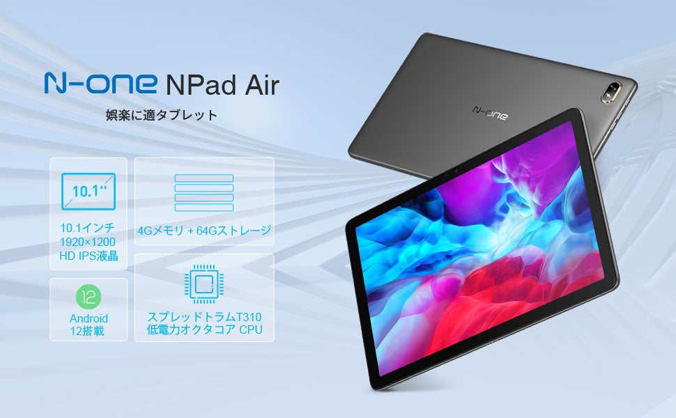 【高性能CPU+10インチ FHD】NPad Airの UNISOC T310は、TSMCの12nmプロセスで製造され、DynamIQアーキテクチャを使用して、パフォーマンスと消費電力を考慮したチップフレームワークを実現し、3つの高効率「A55」コアと複数のCPUコアが連携して動作します。また、学習、エンターテインメント、仕事の効率を大幅に向上させる超省電力機能を備えています。Antutuのランニングスコアは16w点と高く、9863aに比べて性能向上率が高い.10.1インチの1920x1200の解像度を搭載し、ディスプレイはより繊細で滑らかで、視覚効果が優れています