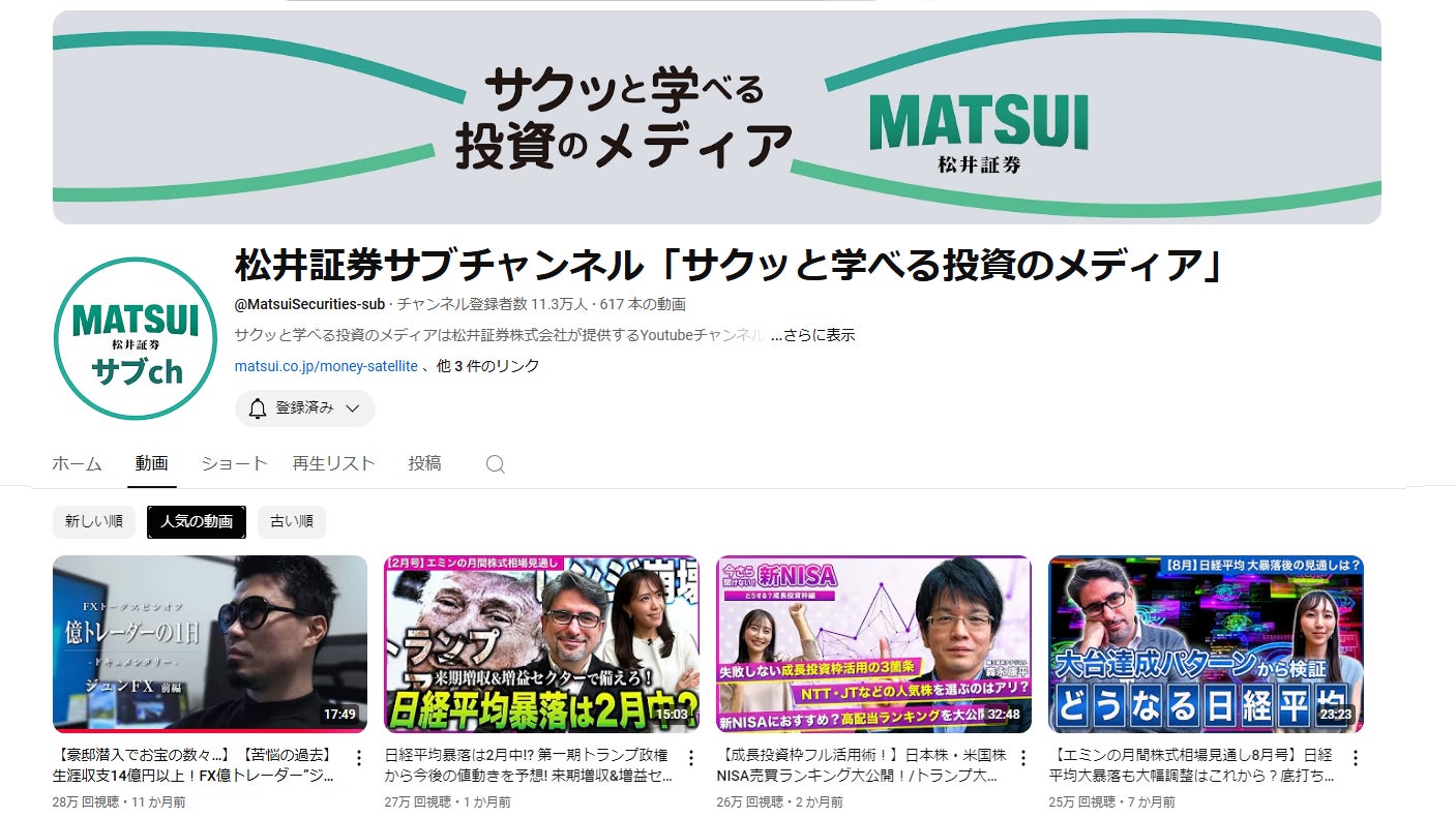 ■松井証券YouTubeサブチャンネル『サクッと学べる投資のメディア』(@MatsuiSecurities-sub)