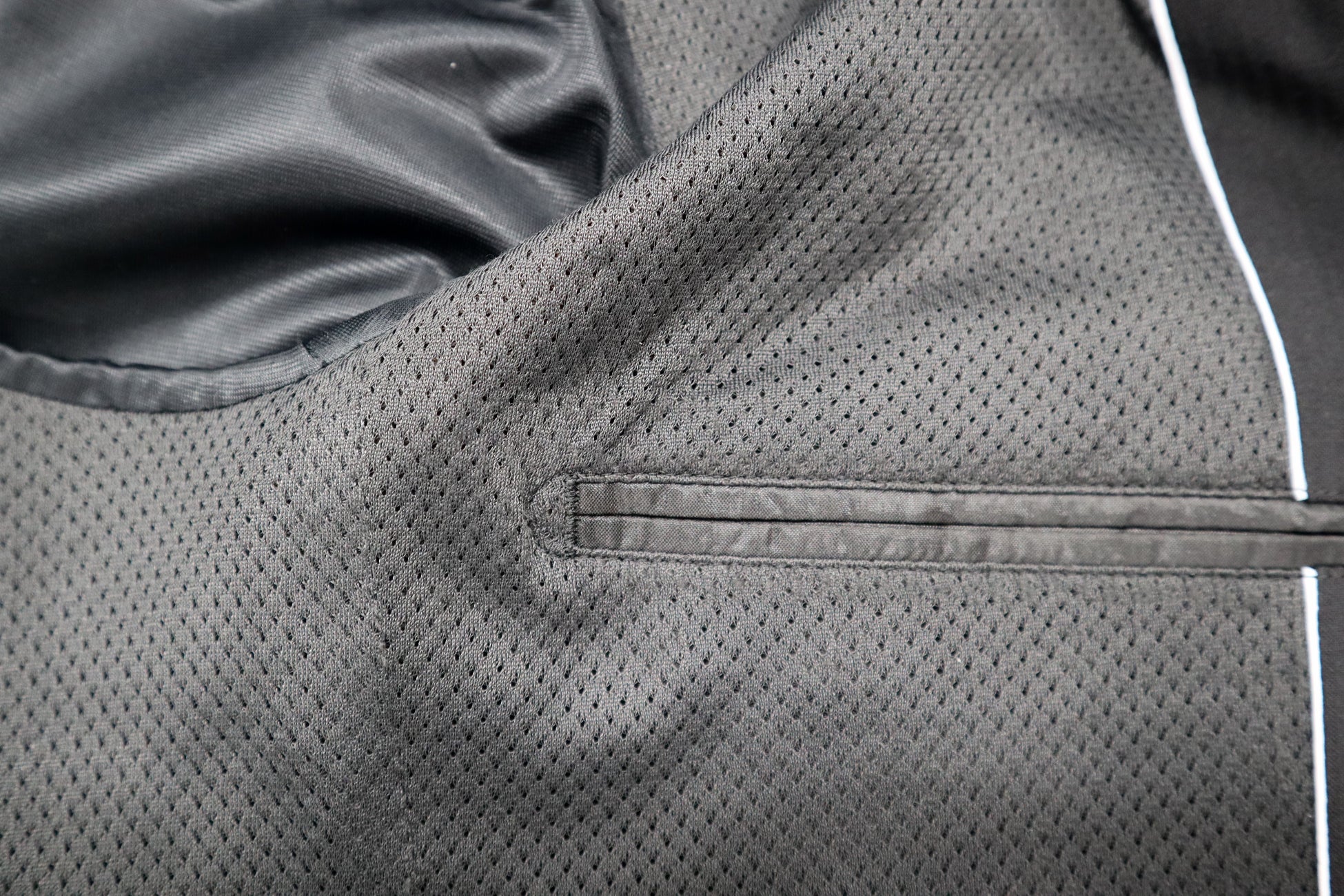 表地には、軽量でスポーツ衣料にも使用されているストレッチ性の高い糸を混紡した生地を採用しました。肌にまとわりつく裏地は、極力なくしながらもサラッと着用できるように軽くて通気性の良いメッシュ裏地を採用することで、従来品と比べても約20%(当社比)の軽さを実現。さらに、夏場の外回りやアクティブに動くビジネスパーソンに嬉しい自宅の洗濯機で気軽に洗うことができるウォッシャブル機能を備えており、汗ばむ季節でも清潔に着用できます。