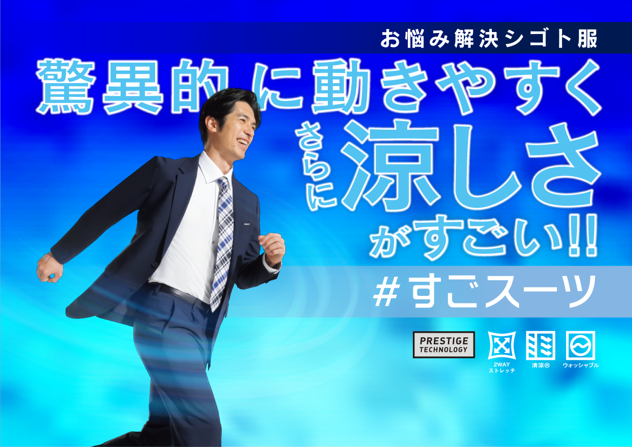 青山商事株式会社(本社:広島県福山市/代表取締役社長:青山理(おさむ))は、機能性を訴求する「#すご」シリーズから夏場でも快適に着用できる通気性と軽さ、ストレッチ性を兼ね備えたスーツを、5月9日(木)から全国の洋服の青山および、公式オンラインストアで発売します。