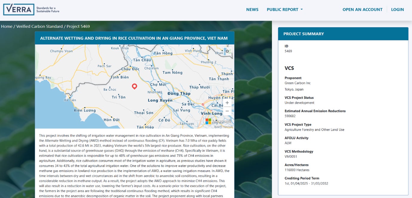 【世界初】Verra水田第1号案件 ベトナム南部An Giang省で進めている「水田のAWD導入によるメタンガス削減プロジェクト」の申請がボランタリークレジットのVerraに受理されリスト化