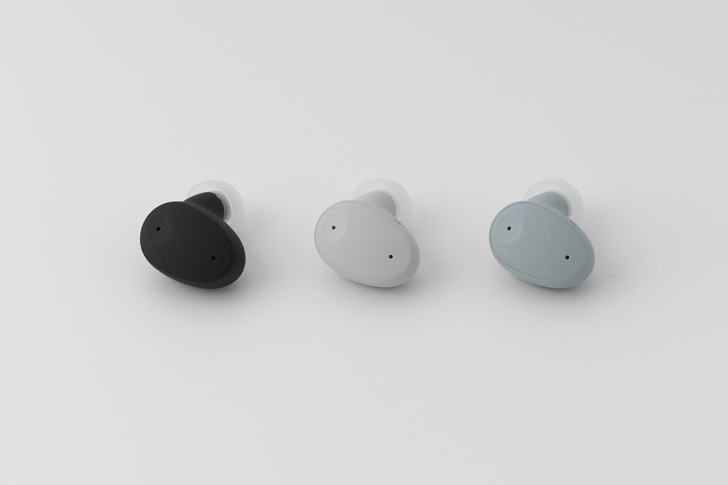 ケースとイヤホン本体には指紋や皮脂がつきにくく、手から滑り落ちにくい「パウダー・コート」を採用。くすみカラーの「SKY GRAY(スカイグレー)」と「GREIGE(グレージュ)」、定番の「BLACK(ブラック)」の3種類をご用意しました。