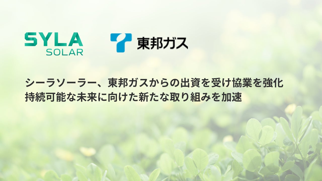 株式会社シーラテクノロジーズ (NASDAQ: SYT、以下「シーラテクノロジーズ」) の子会社である、株式会社シーラソーラー (代表取締役社長: 淵脇健嗣、以下「シーラソーラー」) は、東邦ガス株式会社(本社:名古屋市熱田区、代表取締役社長:増田信之、以下「東邦ガス」)より出資を受け、資金調達を実施しましたのでお知らせいたします。