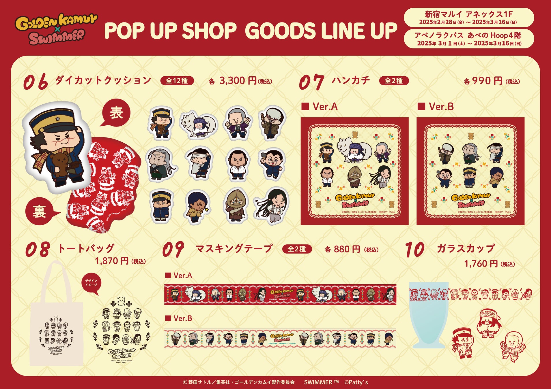 東阪2か所でPOP UP SHOPの開催も決定しました。レトロかわいい杉元たちのグッズが盛りだくさんのPOP UP SHOPにぜひお越しください♪