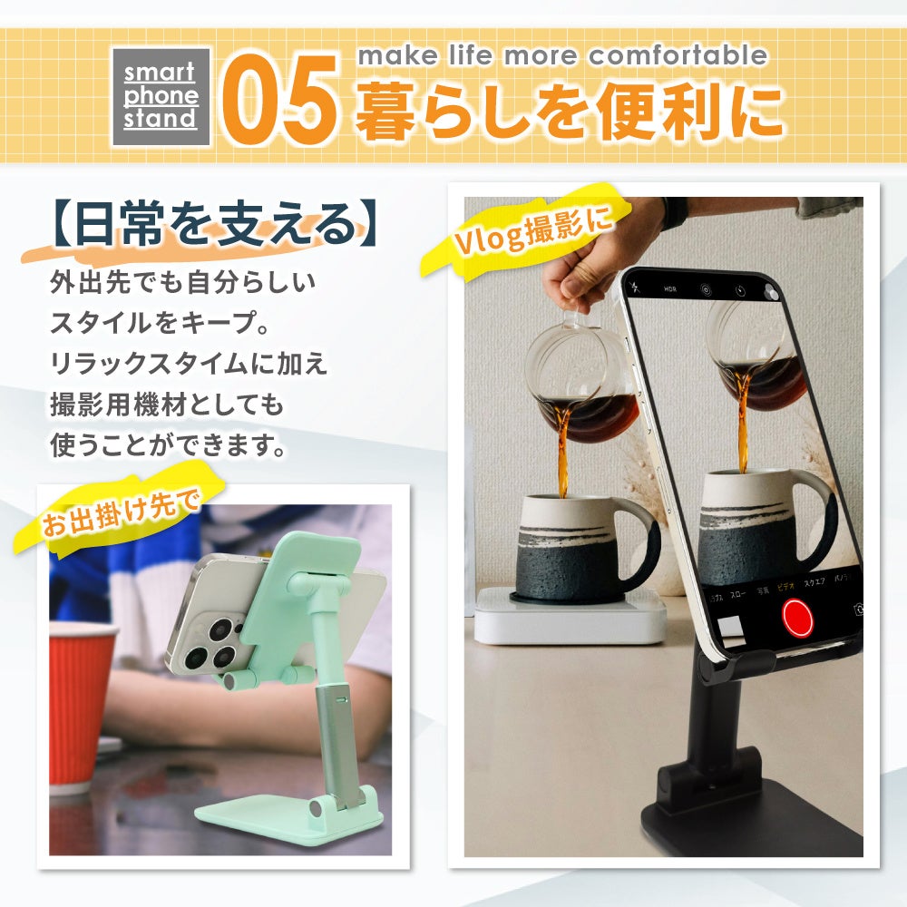 【 シズカウィル 】シンプルデザインでコンパクト、持ち運びやすくて安定感抜群のスマホスタンドが新登場!