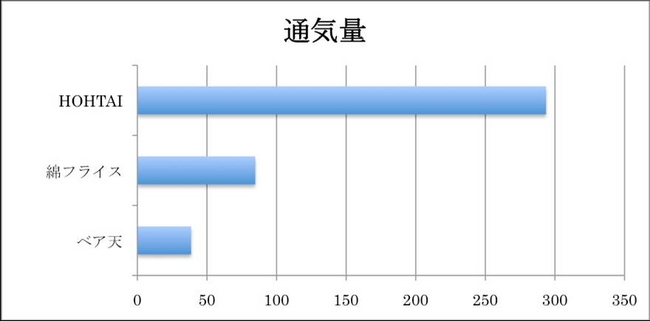 綿95%ポリウレタン5%混紡の商品と比較して、約7倍の通気量(当社比)。