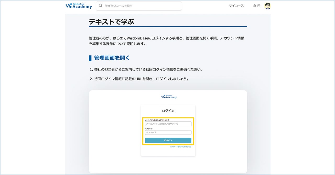 WisdomBase Academyでは、初期設定の手順や使用頻度の高い操作など、オンボーディング時にご説明している内容を、動画とテキストで解説しています。