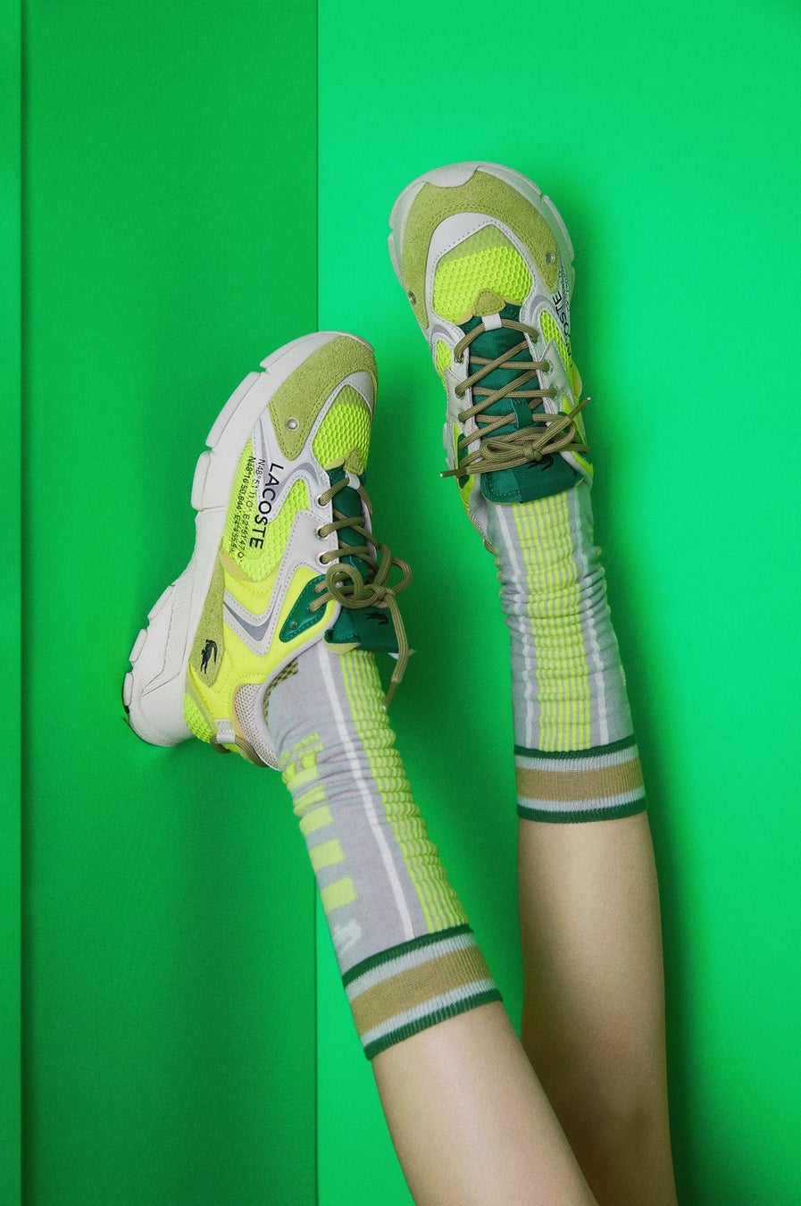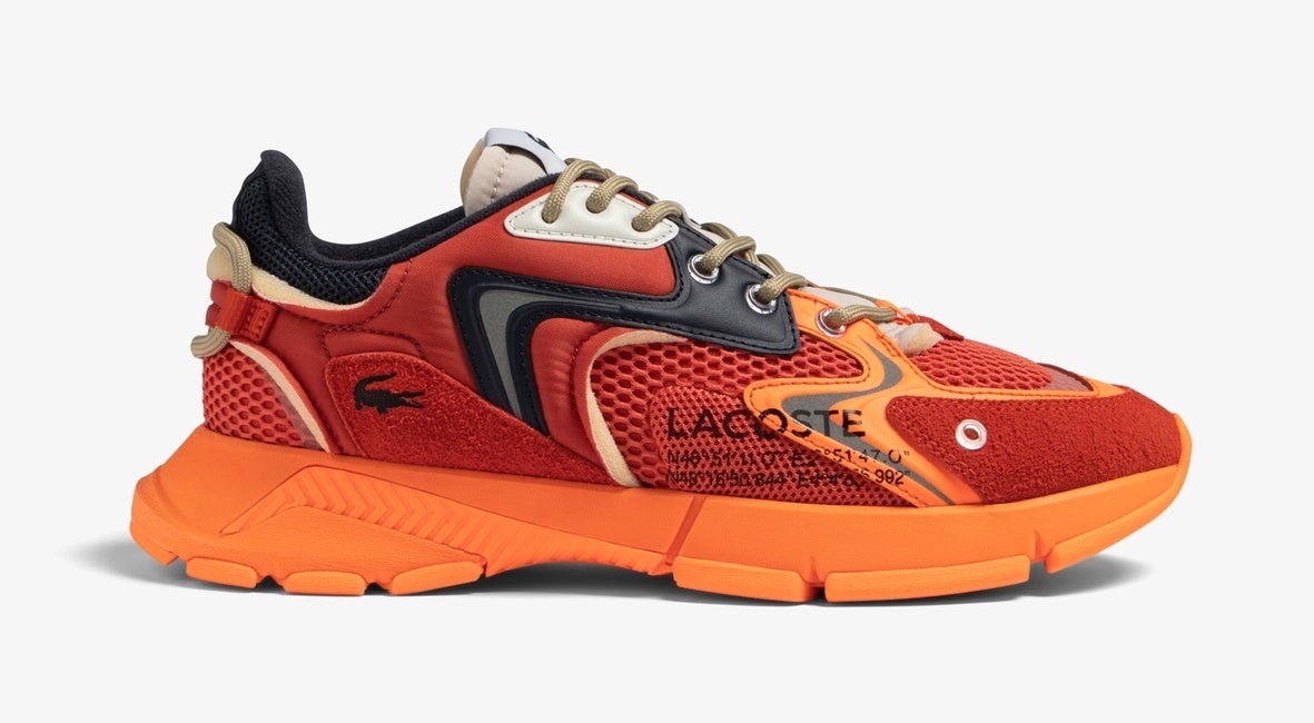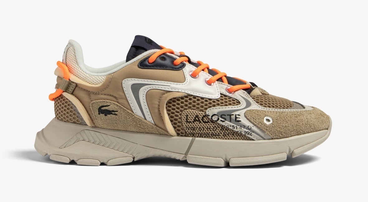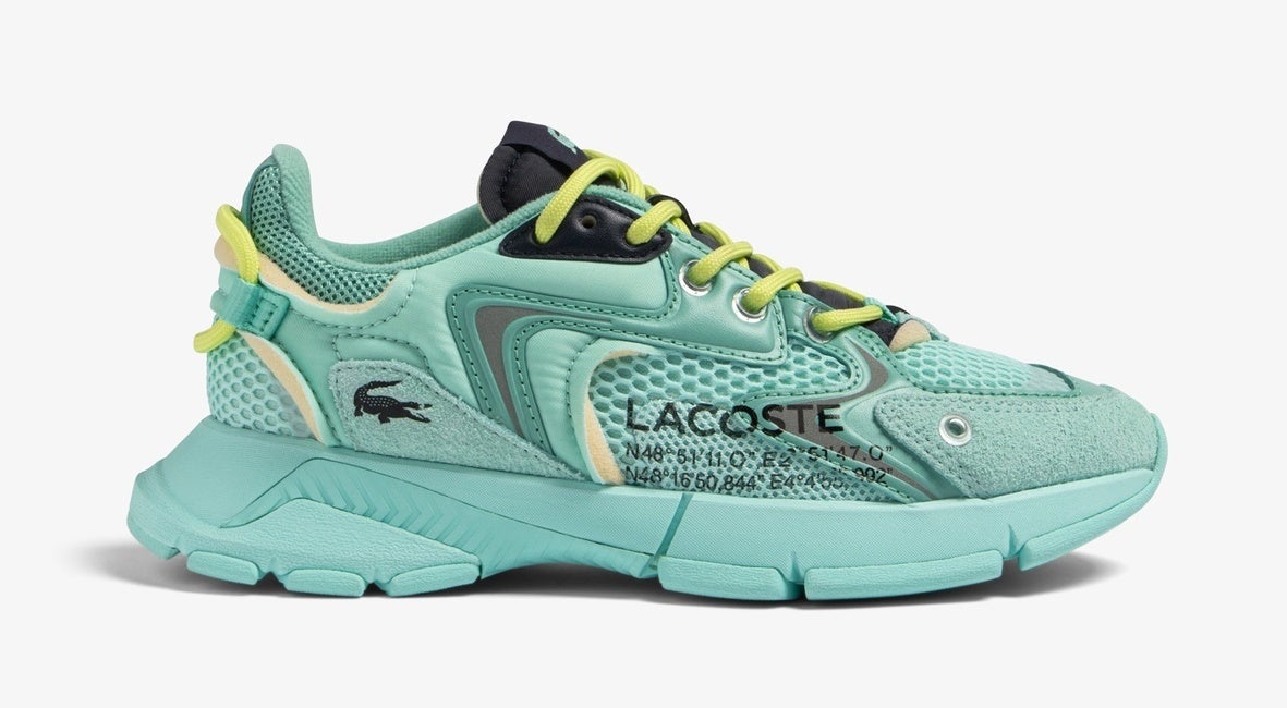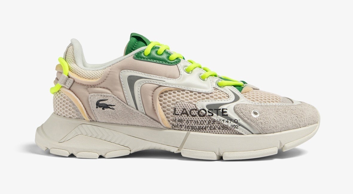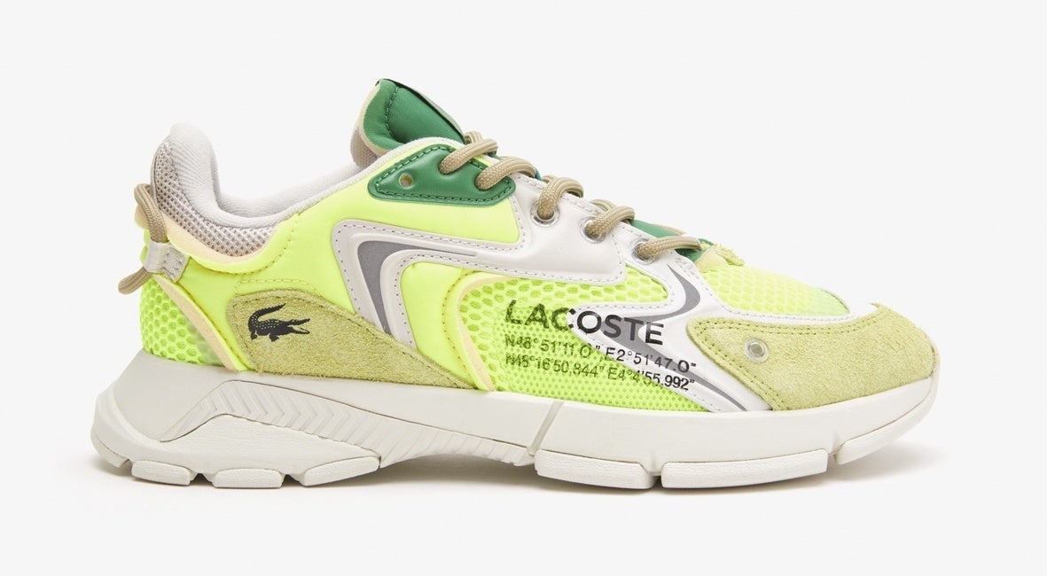 L003 NEOはラコステのファッションショーで発表したコンセプトシューズに改良を重ね完成した最新スニーカーで、テニスからインスピレーションを得ており、それをネオンイエロー×グリーンといったカラーリングで表現するだけでなく、コートとストリート、スポーツとファッション、過去と未来をシームレスに行き来する、創業者ルネ・ラコステの哲学や美学が注入されたエネルギッ