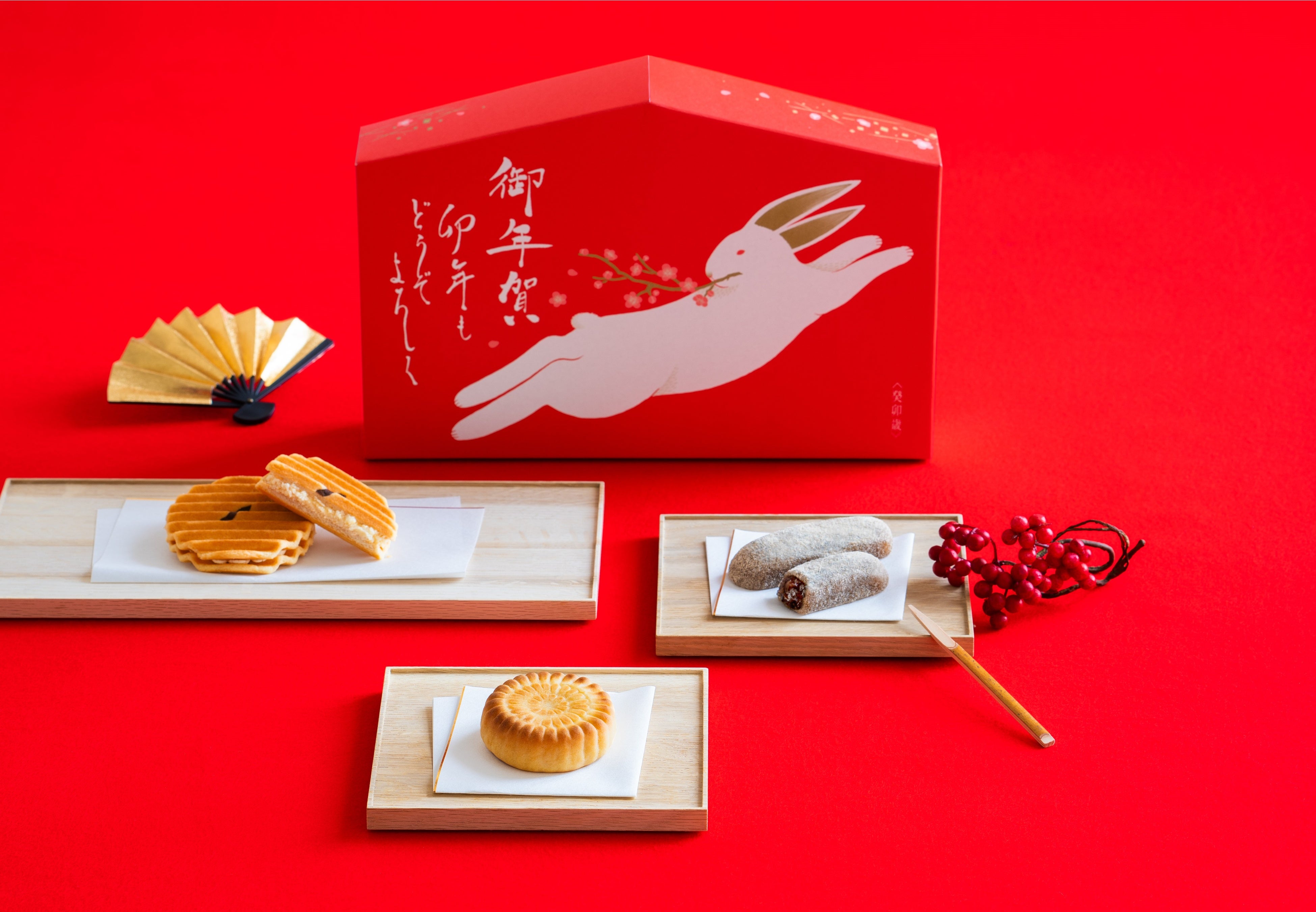 鼓月公式オンラインショップにて、2022年12月1日(木)より、卯(うさぎ)をモチーフにした迎春限定菓子などを、新年の「飛躍」に願いを込めて販売開始!