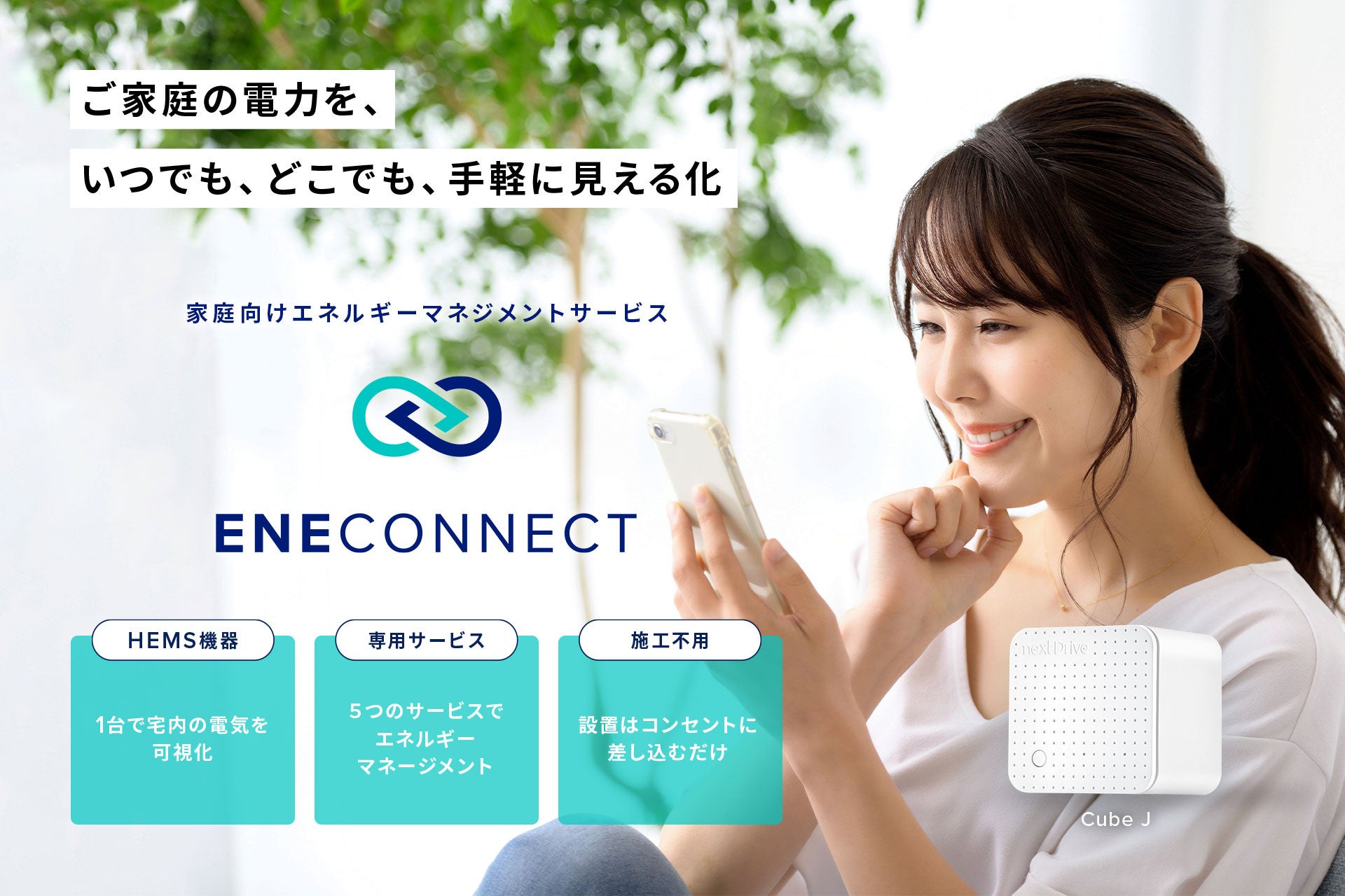 ホームゲートウェイ「Cube J」と専用アプリ「ENECONNECT」の接続で、家全体のエネルギー使用状況の「見える化」を実現