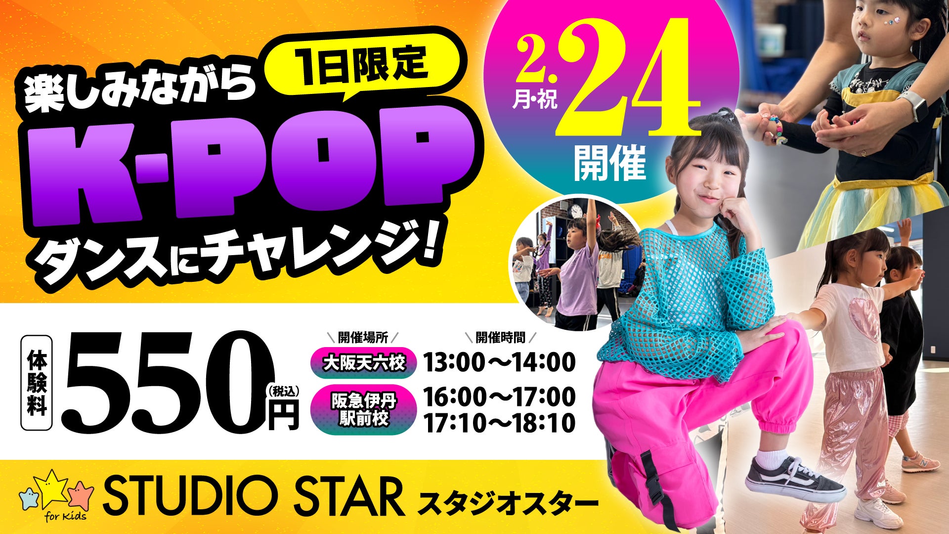 創業106年、ココロとカラダの健康を支えるウェルネス企業、SDエンターテイメント株式会社(本社:北海道札幌市、代表取締役社長:高橋 誠 東証スタンダード4650)が運営するダンススクール『スタジオスター』の大阪天六校・阪急伊丹駅前校では、2025年2月24日(月・祝)に「K-POPダンス体験」を開催します。