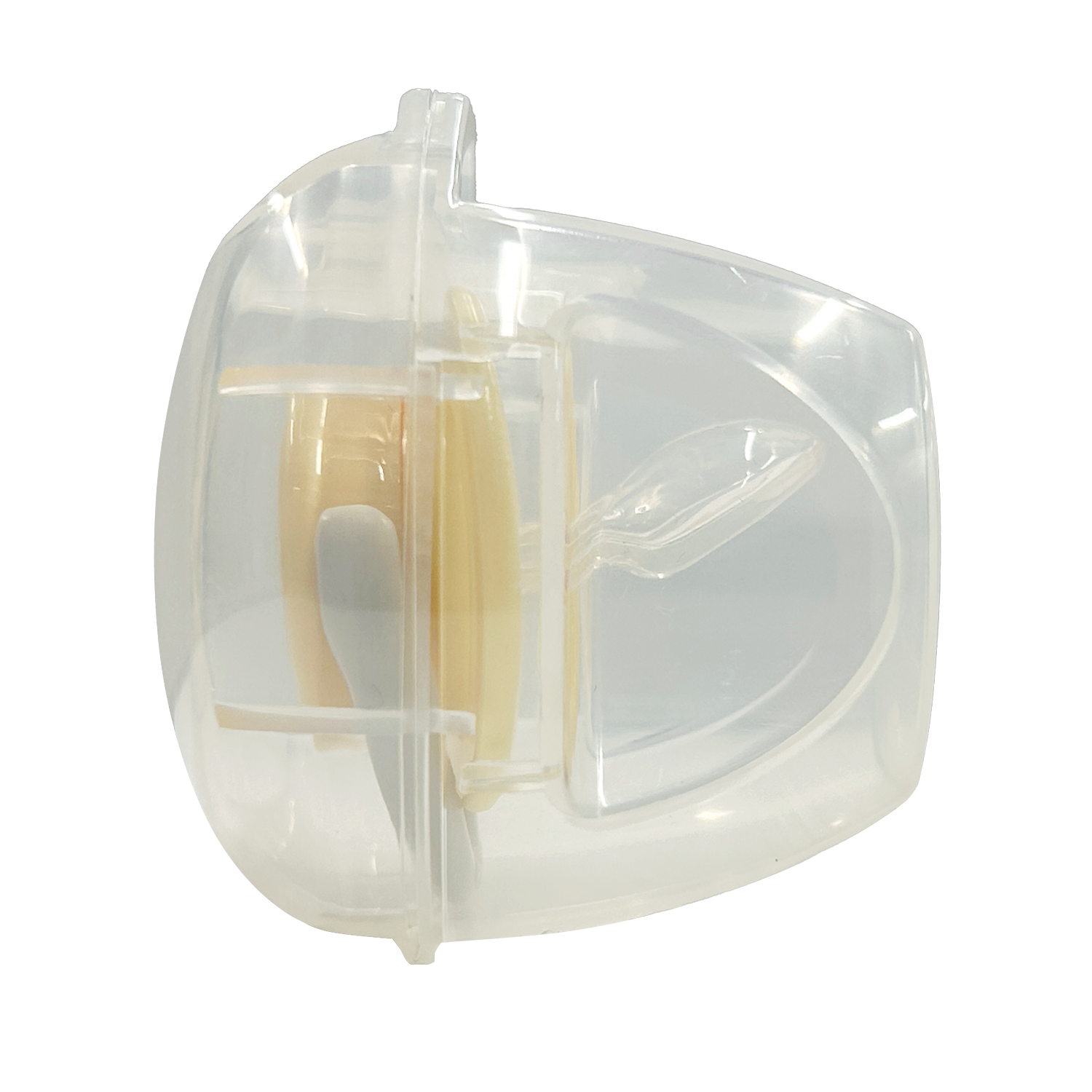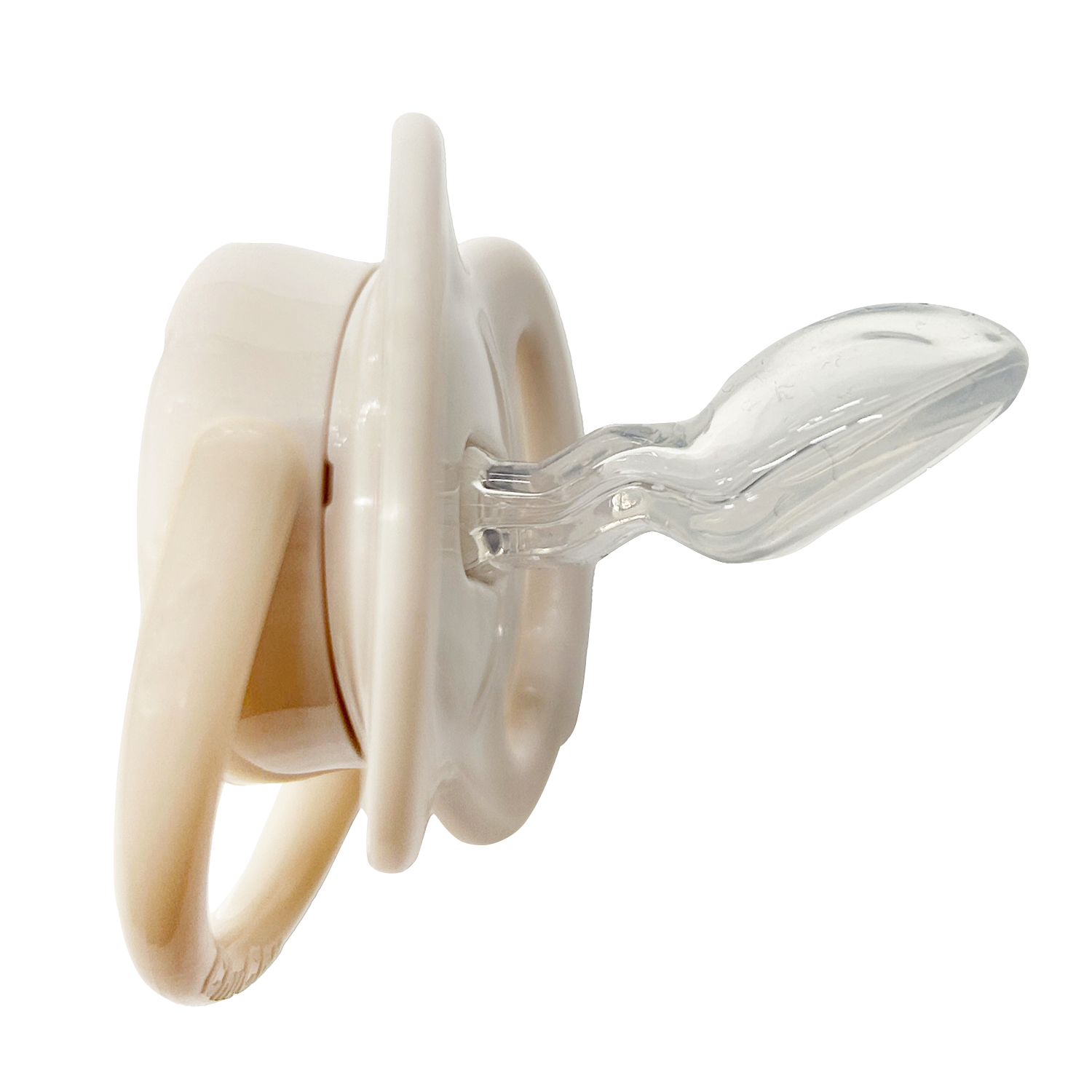 今回のリニューアルでは、ユーザー様の意見を参考としたこだわりの形状を実現。①口まわりに跡が付きにくい「フラット形状」や②高い通気性を実現する「大きな通気口」、③口まわりに干渉しにくい「コンパクトなサイズ」と、機能性がアップしました。また、従来品の正面にあった水抜き用の穴がリニューアル後はなくなり、乳首内の水は通気口から抜ける仕様となっています。
