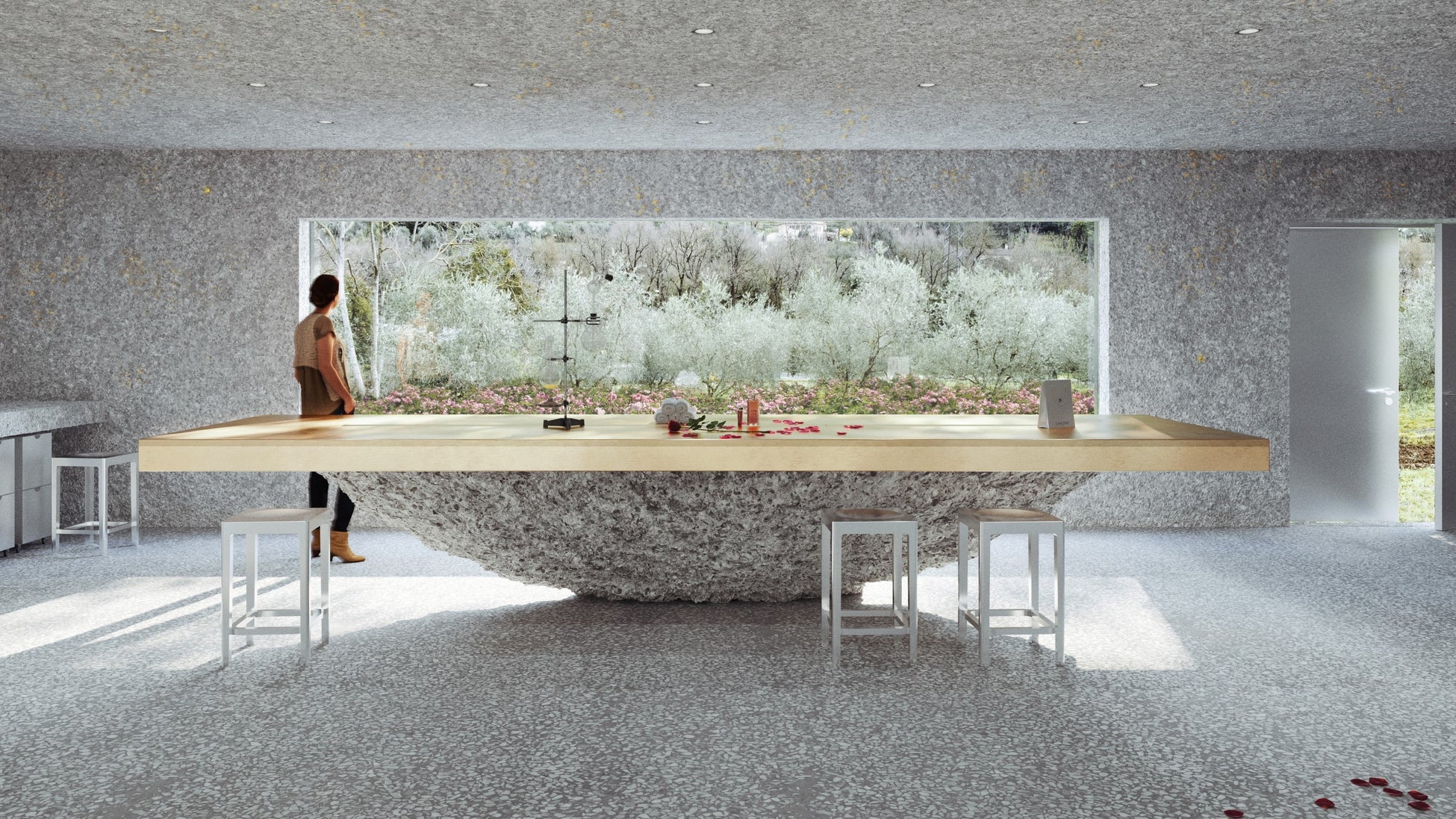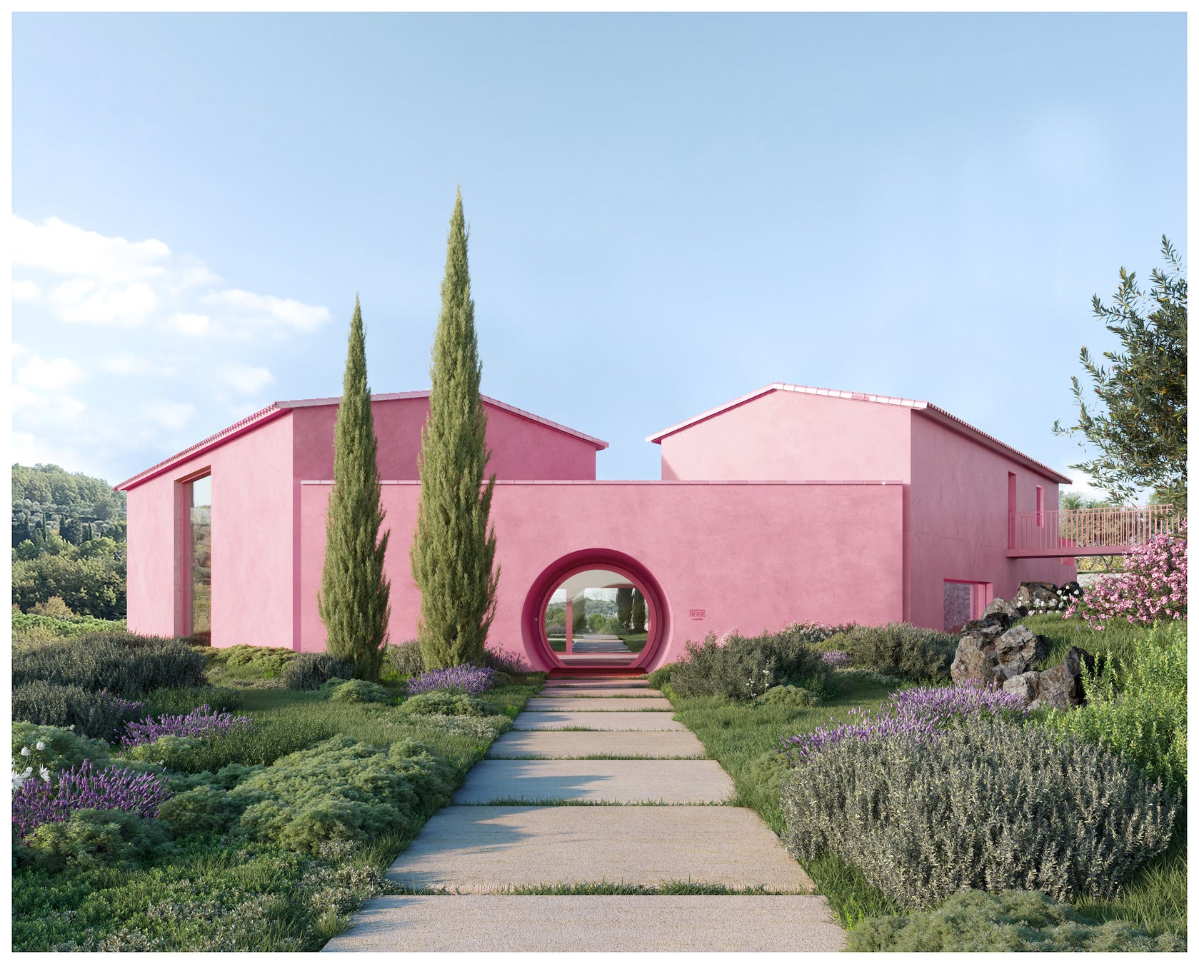 ランコムはその言葉と違わず、この穏やかで持続可能なプロジェクトを果断に実行していきます。プロジェクトで設計を手掛けたのはNeMエージェンシーに所属する2人の建築家、リュシー・ニネとティボー・マーカです。パッシブバイオクライマティックデザインがベースになっています。以前からあったドライストーンウォール*¹は残し、伝統の工法で修復しました。新しい農業施設は自然の景観になじみ、ストーンウォールの外観とも調和する作りです。新しいローズハウスは従来のプロバンス風住居の大きさと建築学的特徴を踏襲しながら改修しました。グラース地域の遺産や技術を忠実に取り入れた色や素材を使いながら現代的外観に仕上げています。主たる建物の改築については被覆材や屋根、木工品など外装に用いる材料はすべてピンクで統一し、色の数を抑えることによって全体がまとまった印象を与えます。ピンクはこの土地の色の一つです。この地域に生育する花や植物に自然に存在し、グラースの住宅の正面にもしばしば用いられます。そしてランコムのイメージと共鳴する色でもあります。