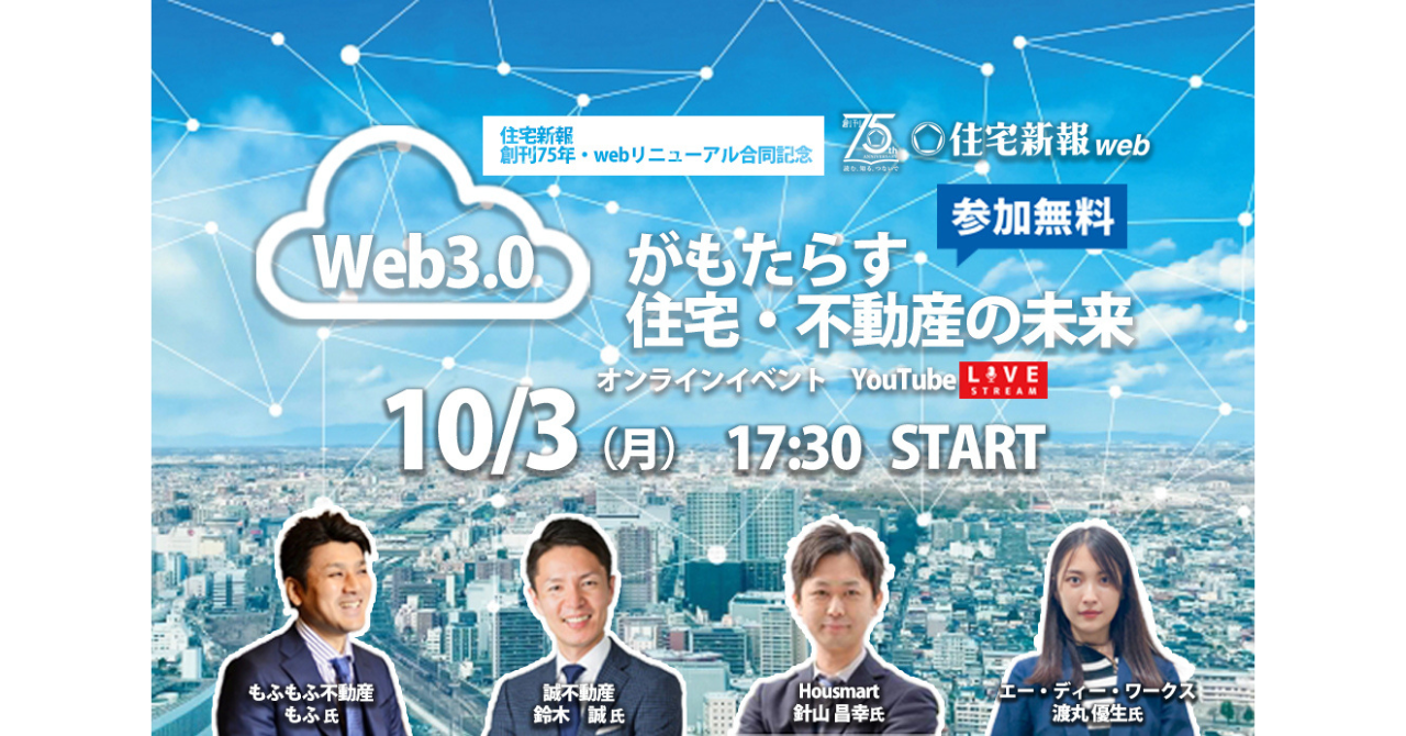 〜不動産系YouTuber もふ氏、「正直不動産」のモデル鈴木誠氏らとWeb3.0がもたらす住宅・不動産の未来について語る〜