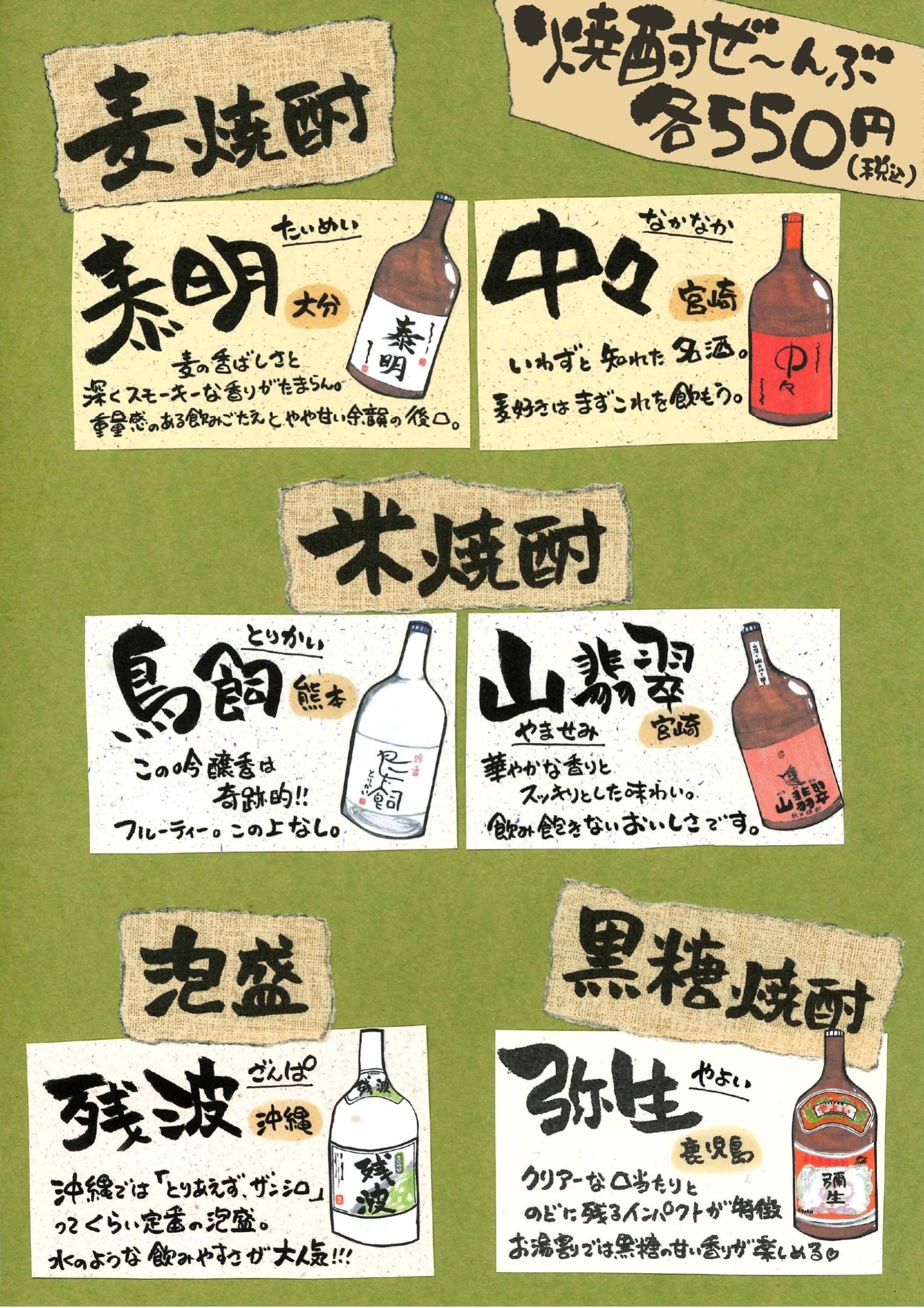 さらに日本各地のおすすめ銘柄焼酎、日本酒が全品一律500円(税抜き)で楽しめます。