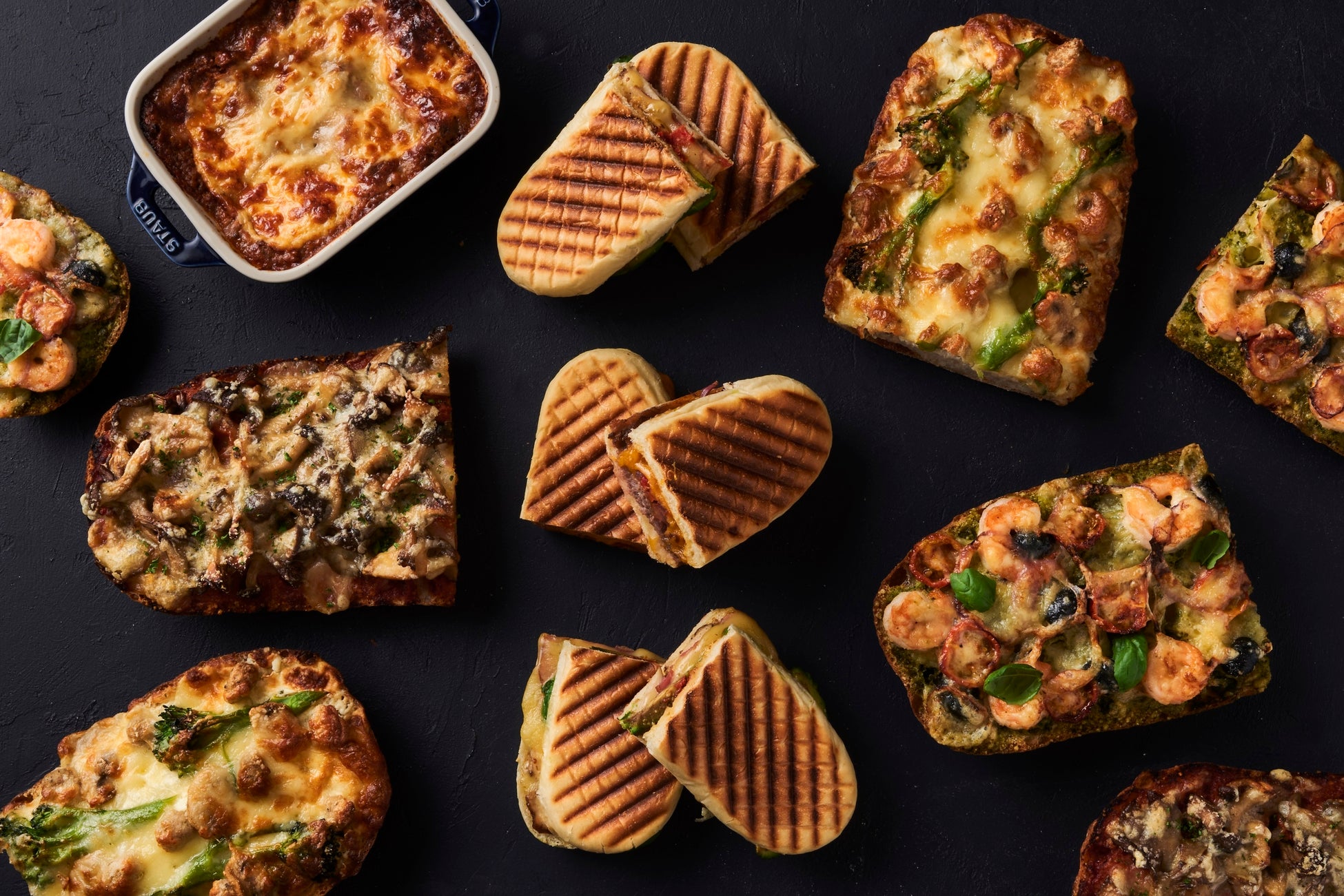 「デリカテッセン」では期間限定で、桑澤剛シェフ特製のパニーニ、ピッツァ、ラザニアのセレクションを揃え、食欲の秋にふさわしい充実のランチセットを提供いたします。選りすぐりのベーコンやチーズ、サステナブルシーフードの 海老などにフレッシュな旬の野菜をあわせ、コンビネーションの旨味をさらに引き出すこだわりのソースも。深まる秋のランチに、あるいはご自宅の食卓をアップグレードするひと品としてもおすすめです。