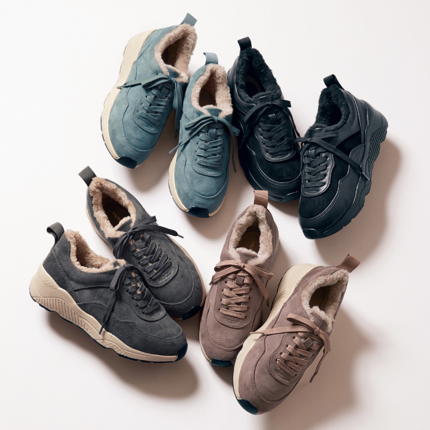 ・履き口から見えるボアとスエード調素材が見た目にもあたたかく、冬のコーデに合わせやすいスニーカー