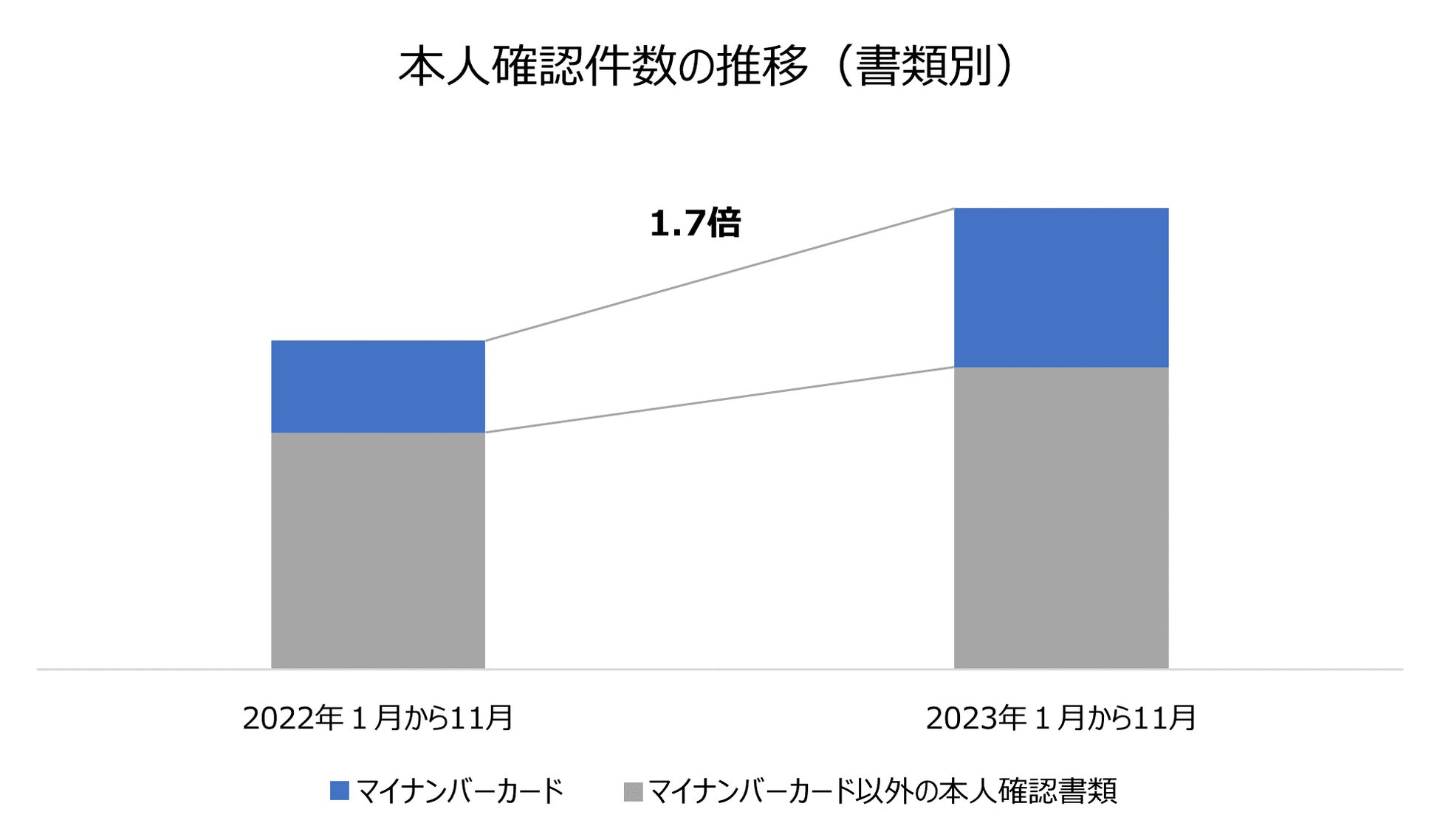 ・マイナンバーカードによる本人確認件数は前年比約1.7倍