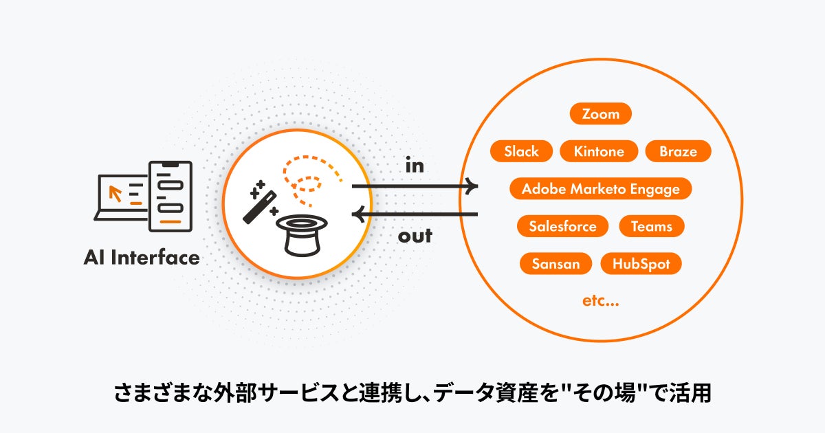 これにより、AIインターフェースを活用する現場部門でもすばやく連携設定を行えるようになり、より幅広い業務シーンでデータ資産を活用しやすくなります。